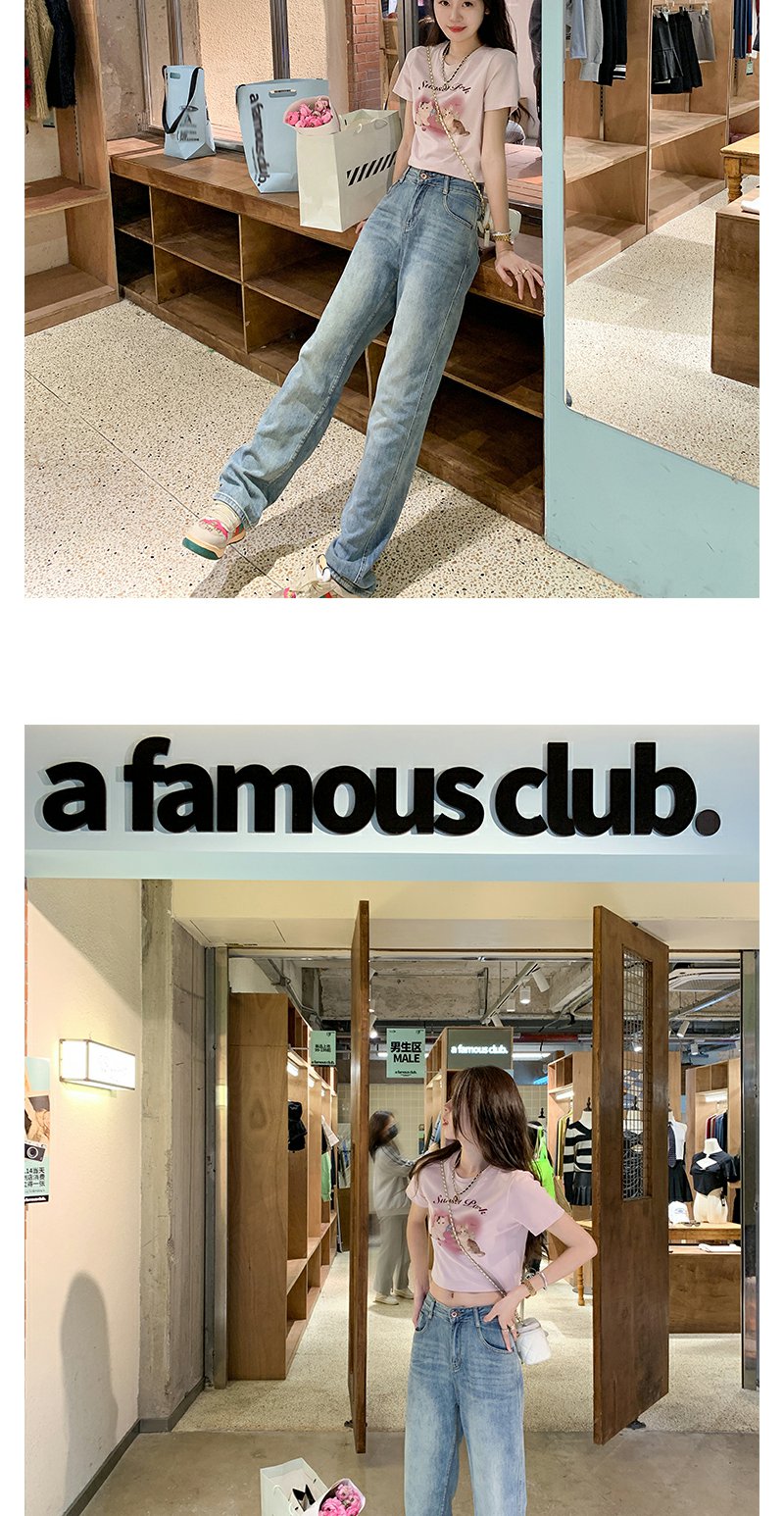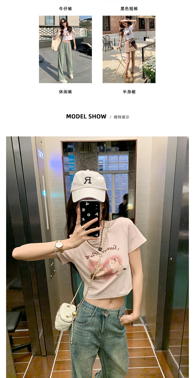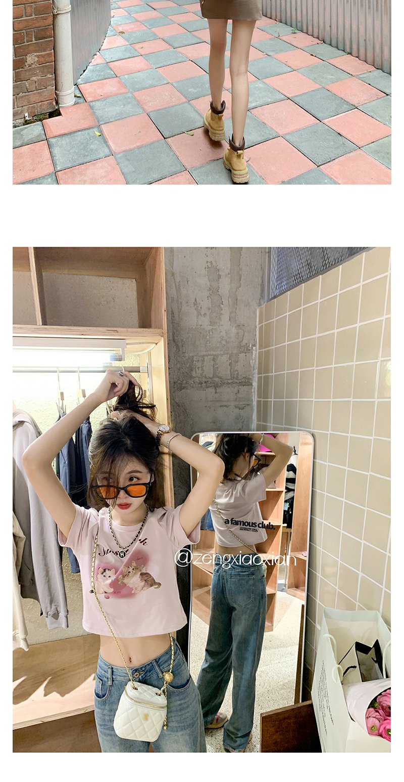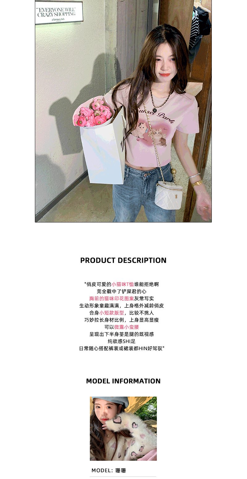 正肩短袖t恤女夏季新款粉色别致小个子短款高级感韩系上衣