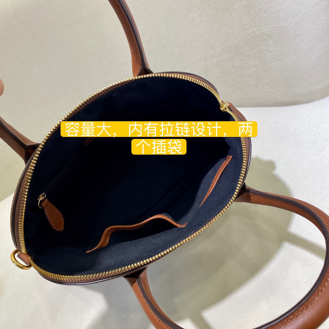 包身整体外形简洁大方,因为拉链覆盖了包包,整体包边的椭圆形设计,最大范围的分开包包的两侧,极像贝壳的外形!