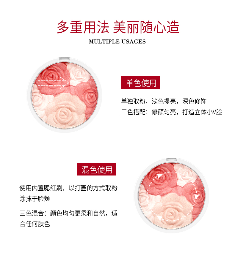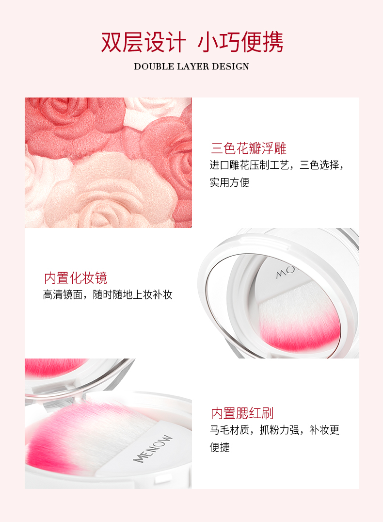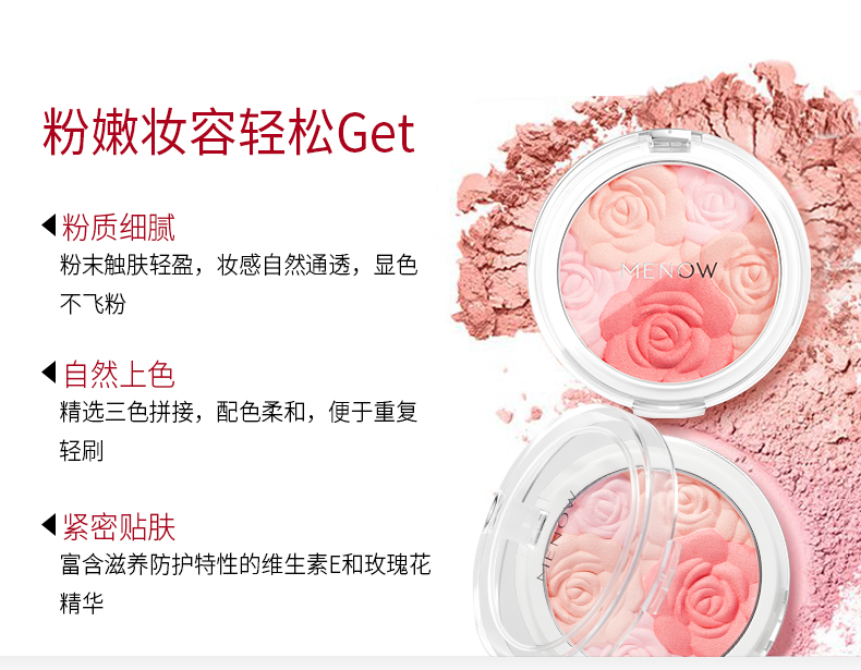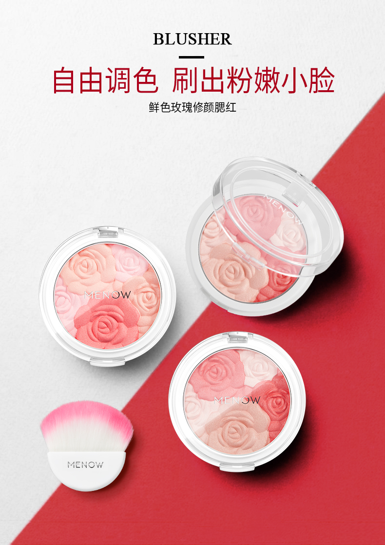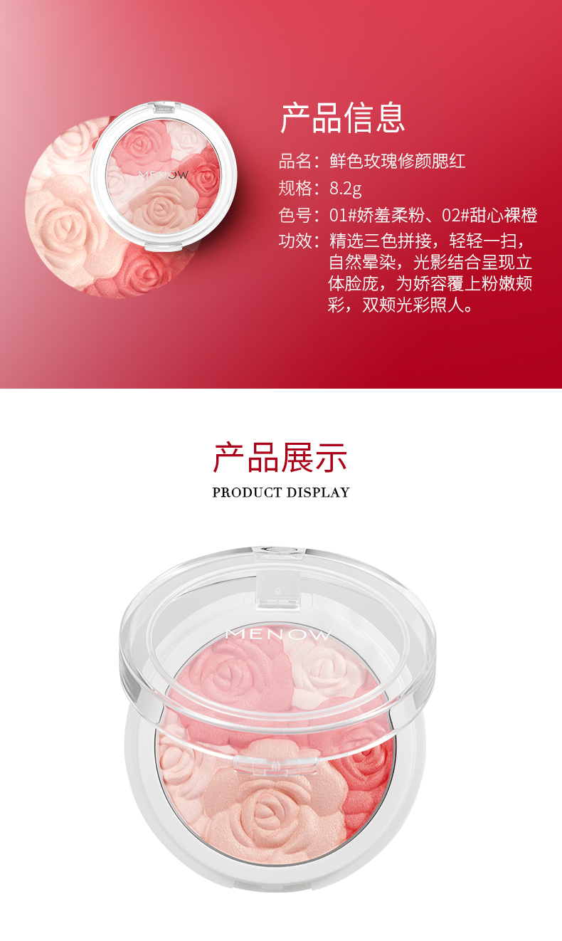 MENOW/美诺 鲜色玫瑰修颜腮红提亮肤色花瓣胭脂膏裸妆自然晒红妆 8.2g