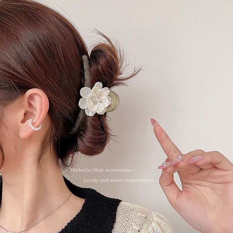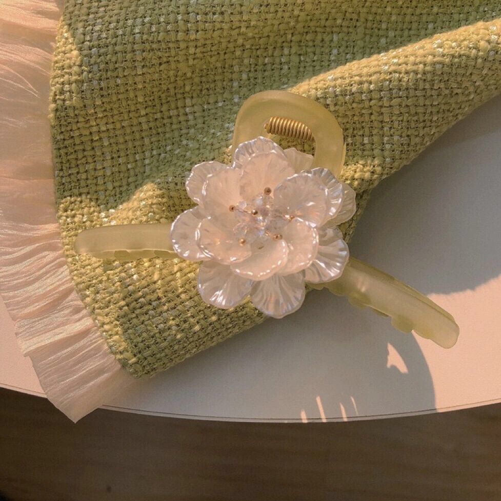 这个磨砂质感爱了爱了️!温柔气质狠狠拿捏,双面山茶花抓夹。法式花瓣超级温柔!