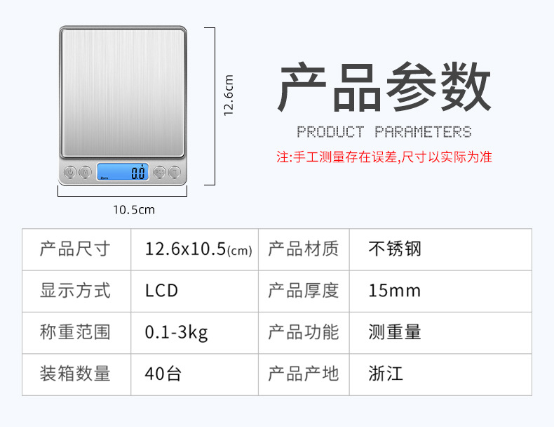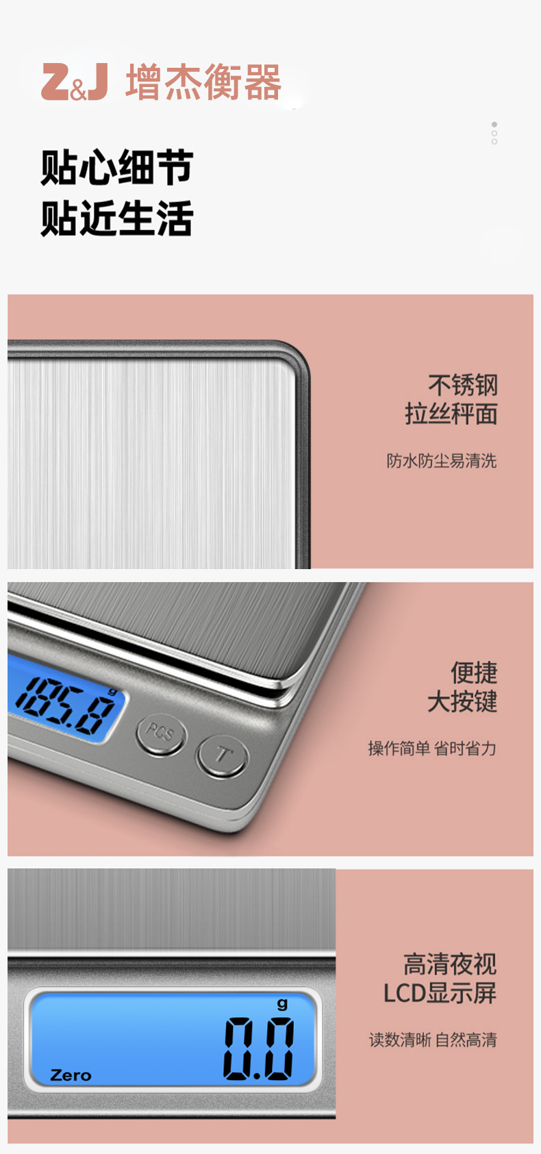 「不锈钢材质!精准至0.1g」烘焙食物咖啡电子秤精度不锈钢小型克称居家日用烘培厨房用品秤