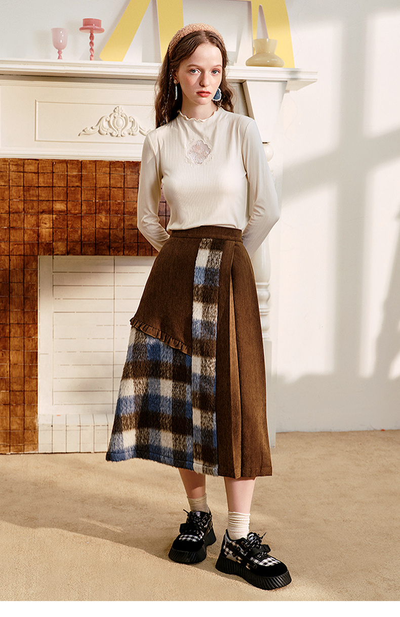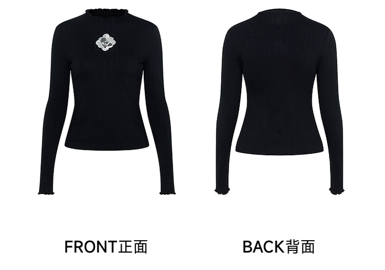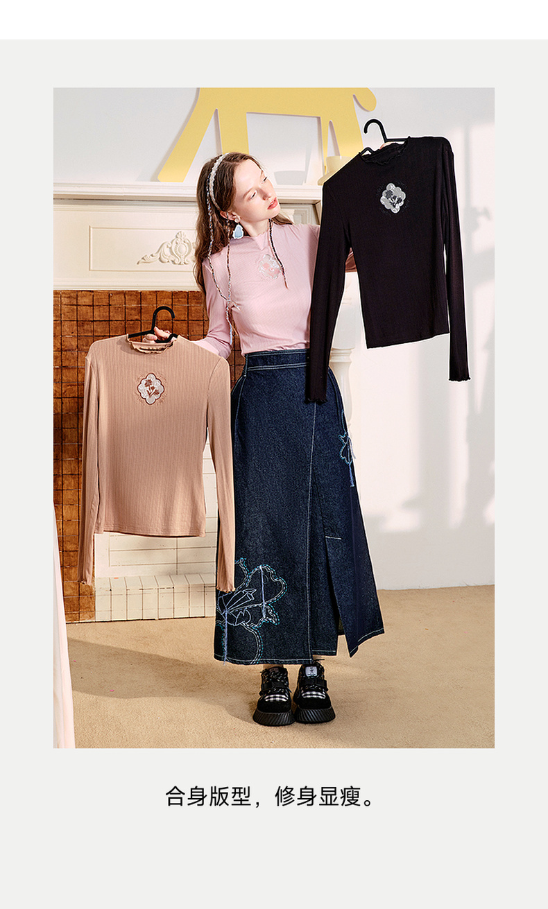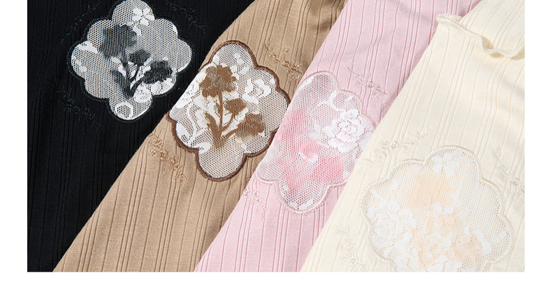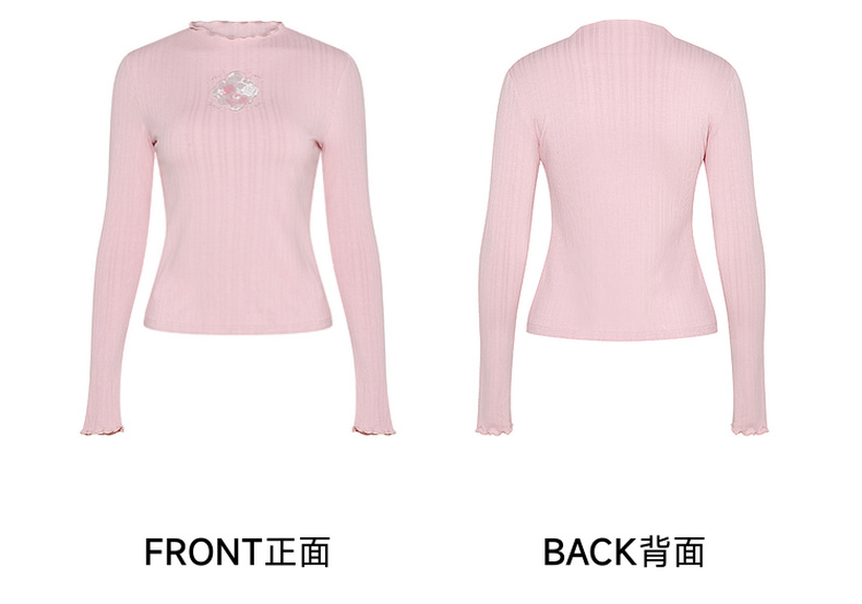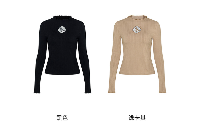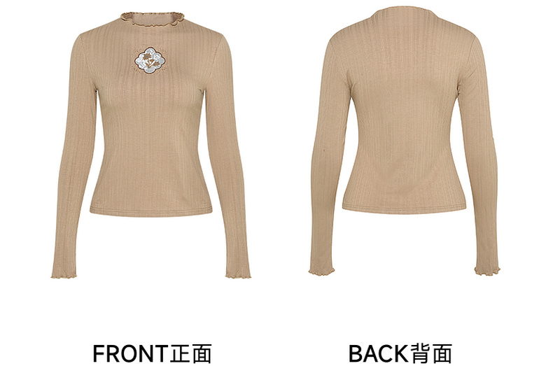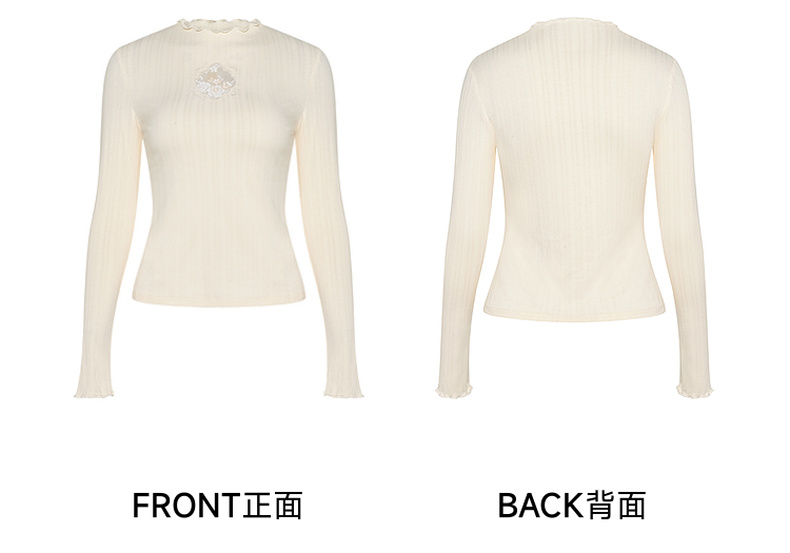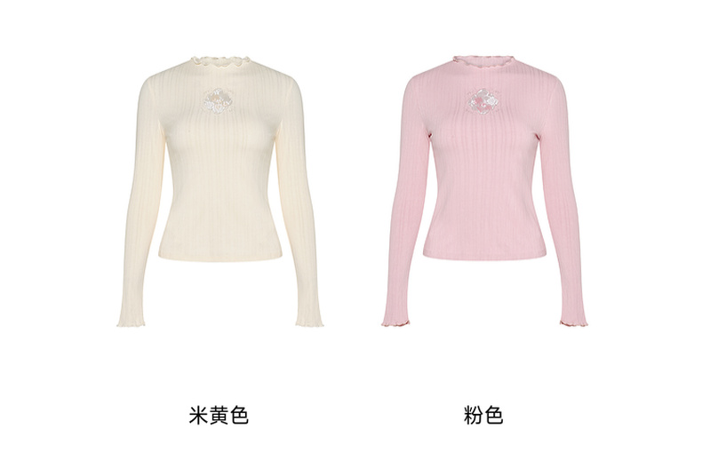 两三事零点时分2024秋季新款小清新蕾丝拼接印花长袖打底衫女t恤