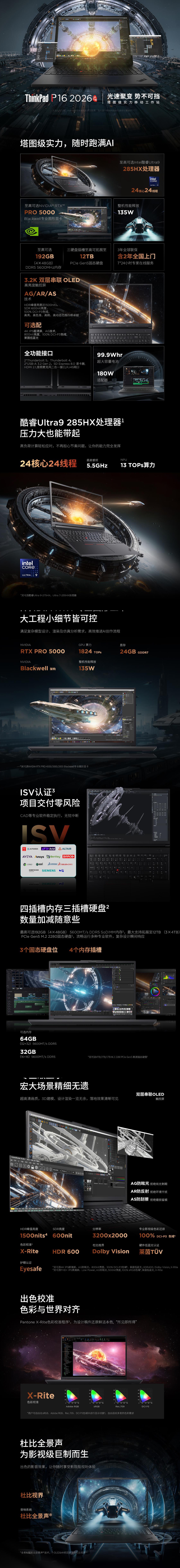 P16-0JCD | Ultra9-285HX/192GB/4TSSD/RTXPro5000-24G/16"3.2KOLED触控屏/Wifi7/win11Pro/红外摄像头/指纹/背光键盘/2Yr |