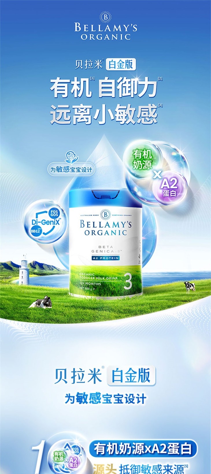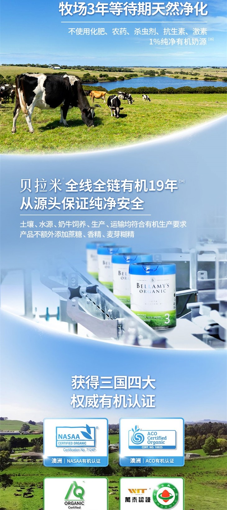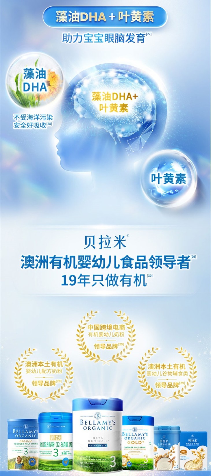 【保税区】澳洲贝拉米白金版有机A2婴儿配方奶粉3段800g