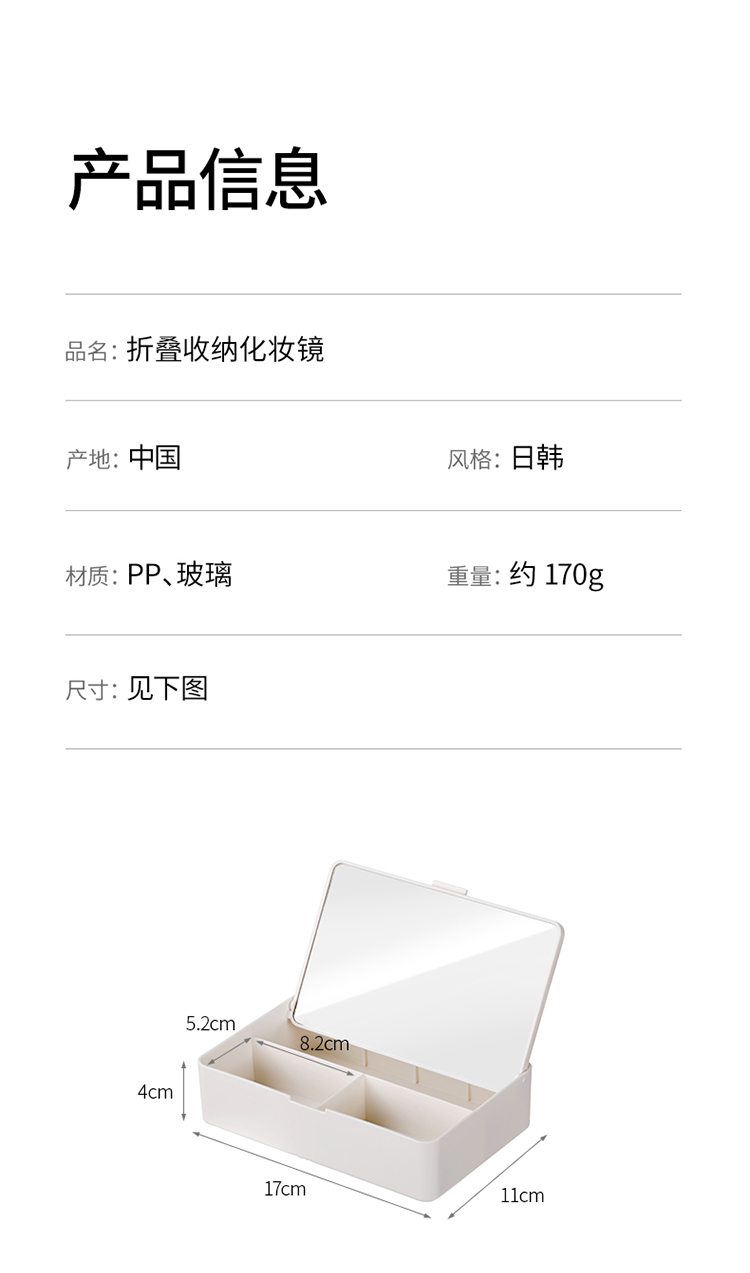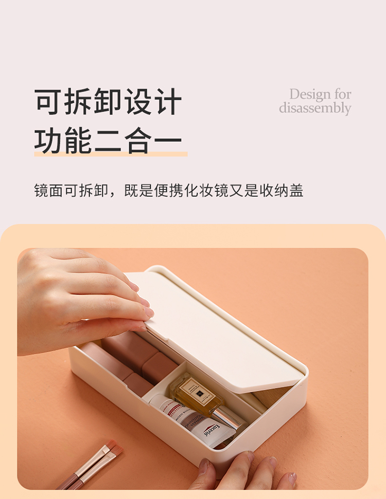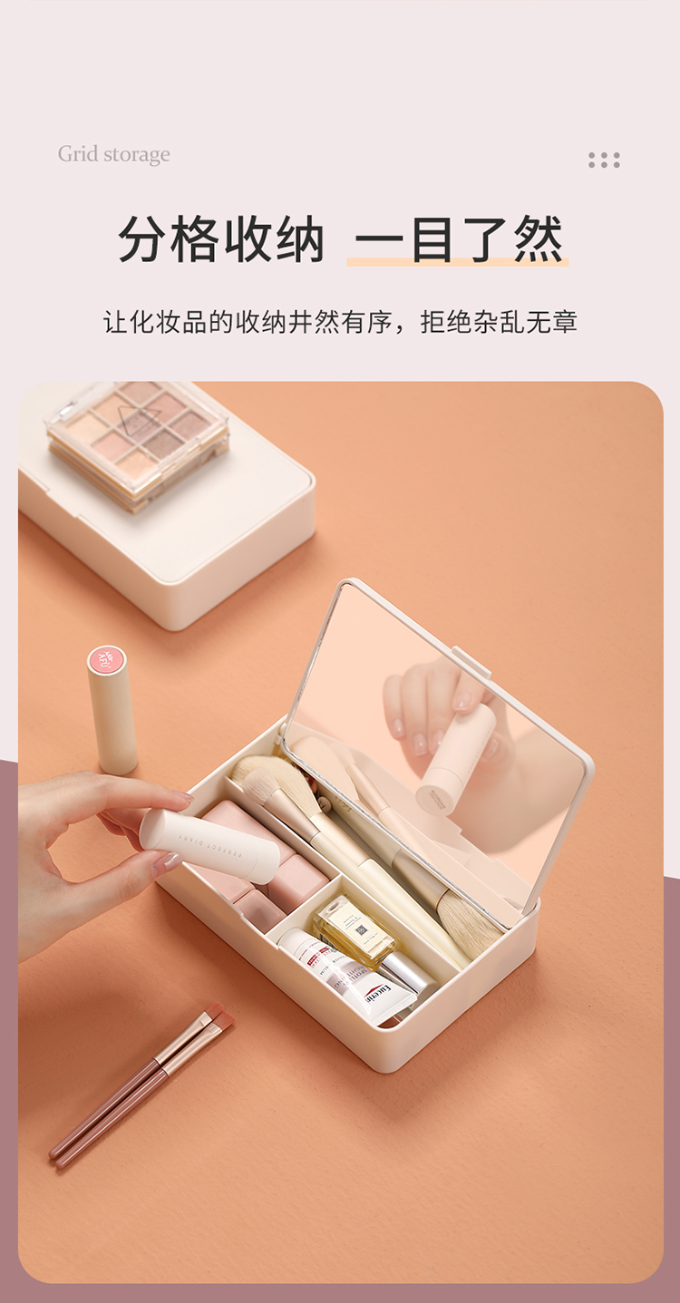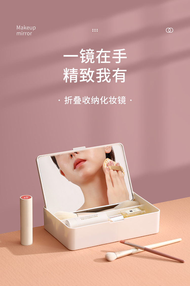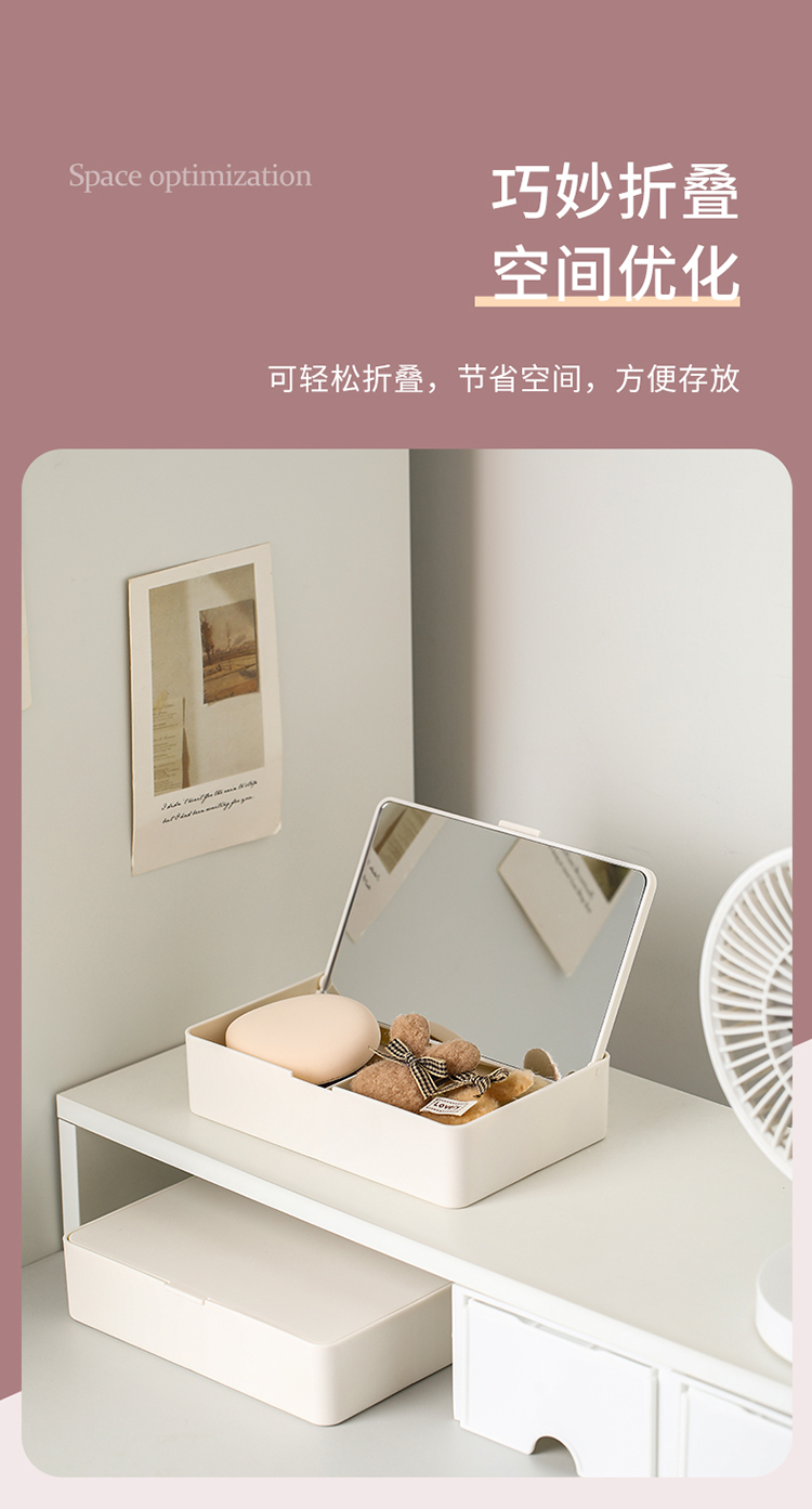 FaSoLa可折叠化妆镜收纳盒一体学生宿舍小型台式化妆品桌面梳妆镜