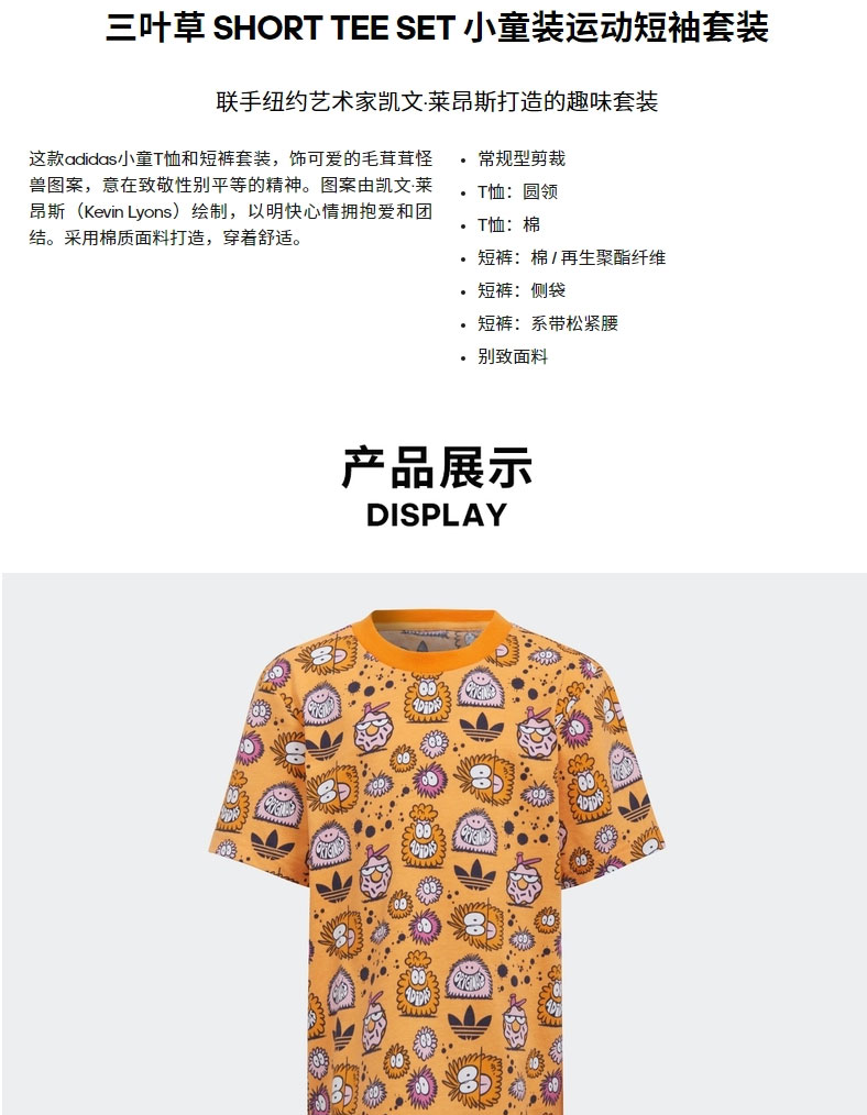 小阿迪三叶草Kevin Lyons联名小童装运动短袖套装HF7551