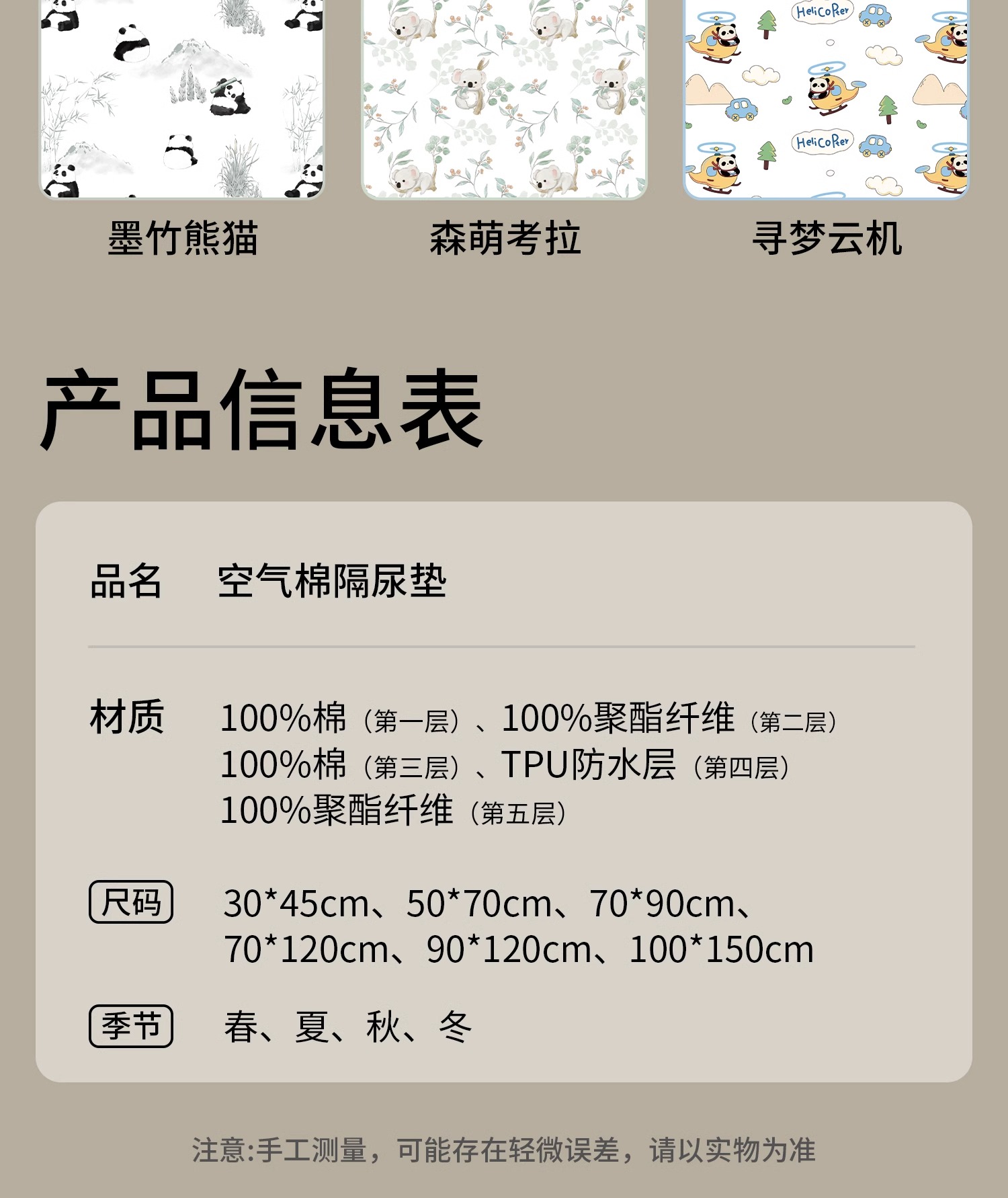 科巢新生婴儿隔尿垫大尺寸宝宝防水透气可洗纯棉姨妈垫生理期床垫
