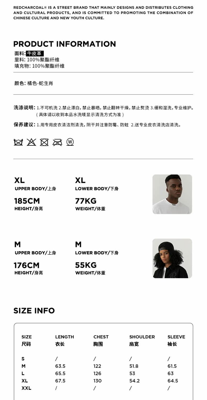 REDCHARCOAL x SUNNY艺术家联名 市井十二-蛇 红炭真皮刺绣棒球服