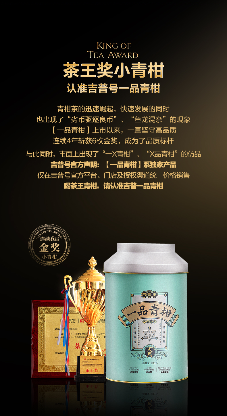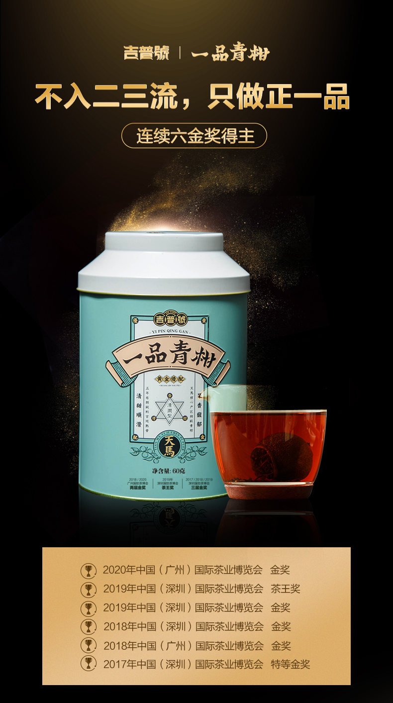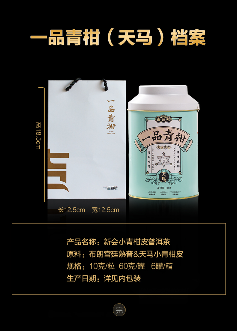 【茶王奖】吉普号 一品青柑 新会天马柑+五年布朗宫廷料 60g/罐(天猫京东同款)