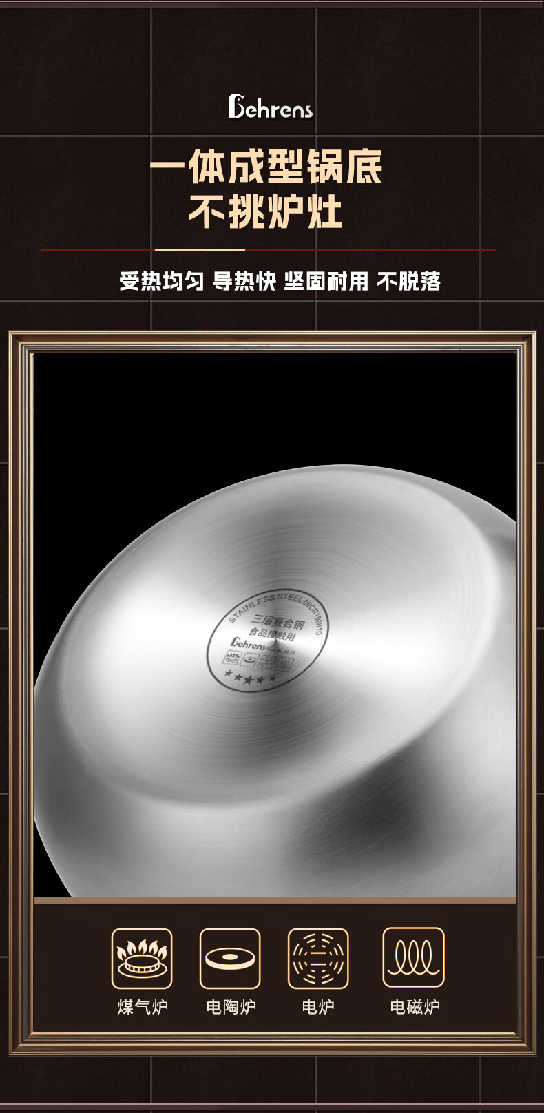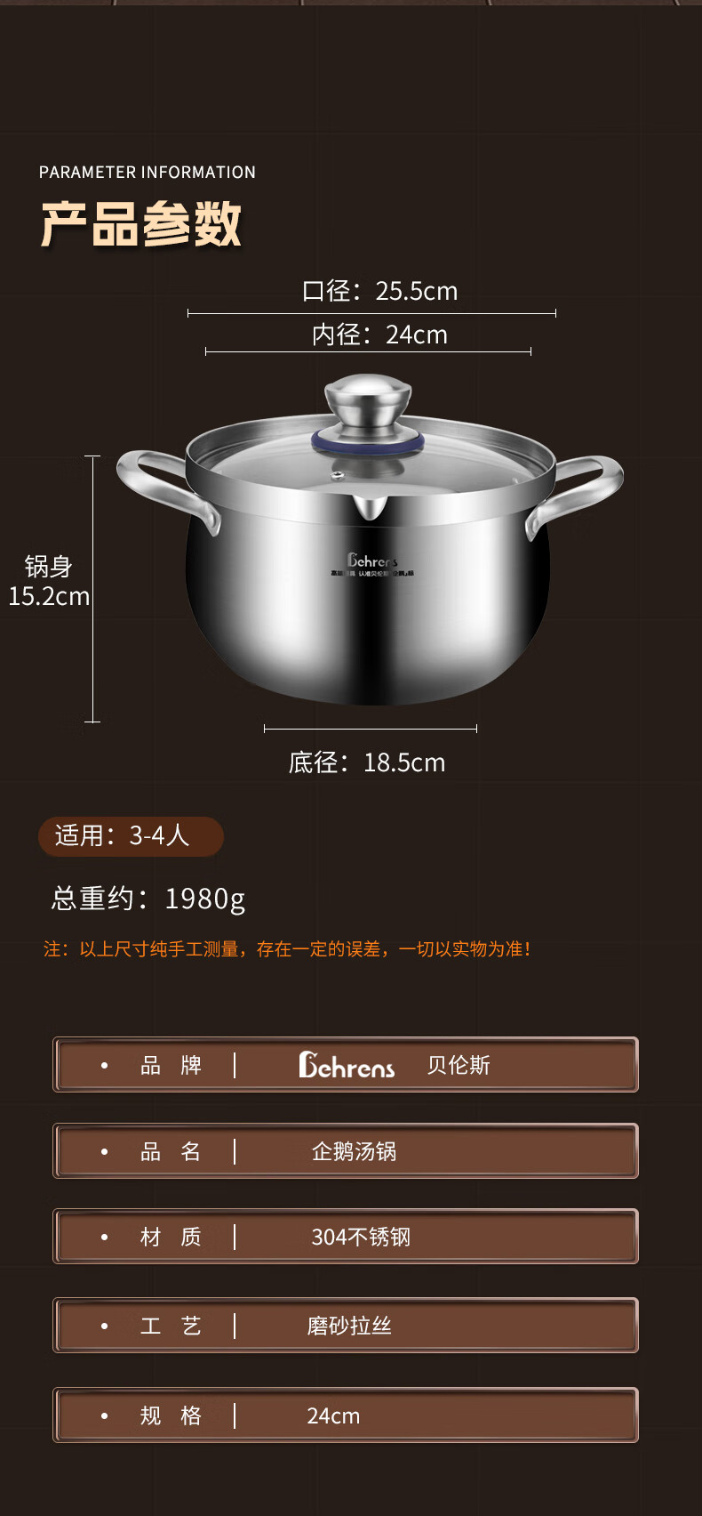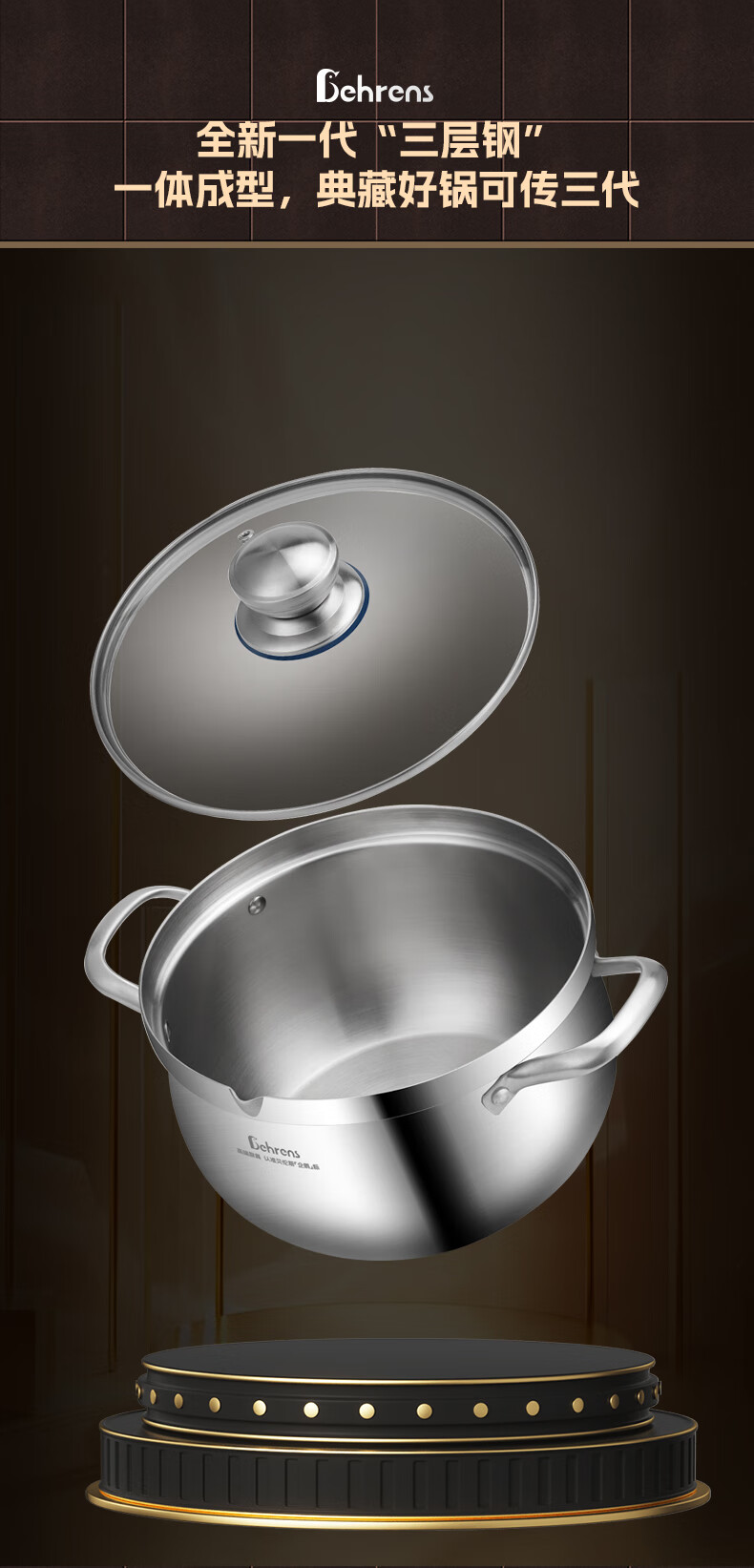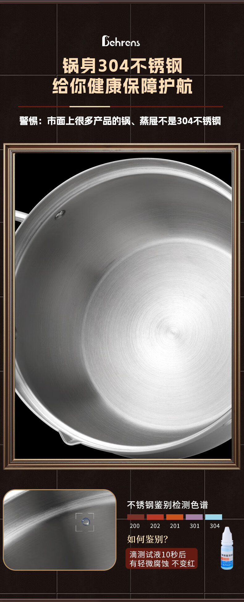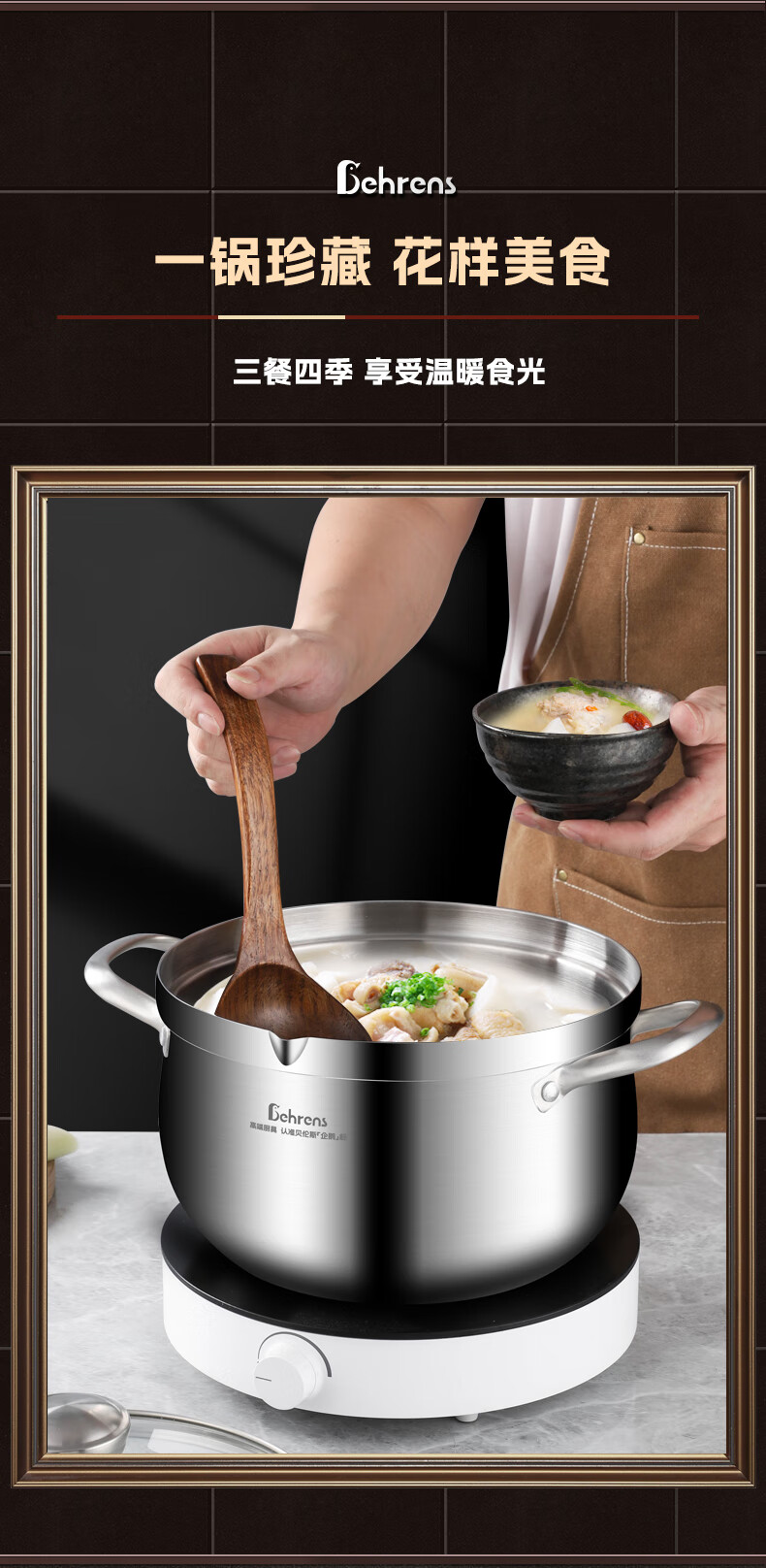 贝伦斯304不锈钢汤锅加厚双耳大容量深家用燃气灶电磁炉炖煮高汤锅