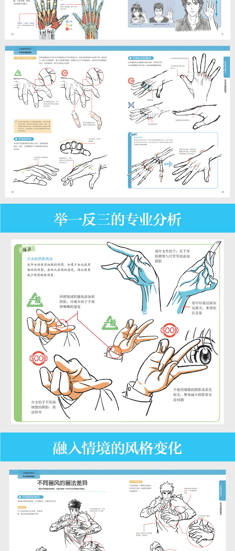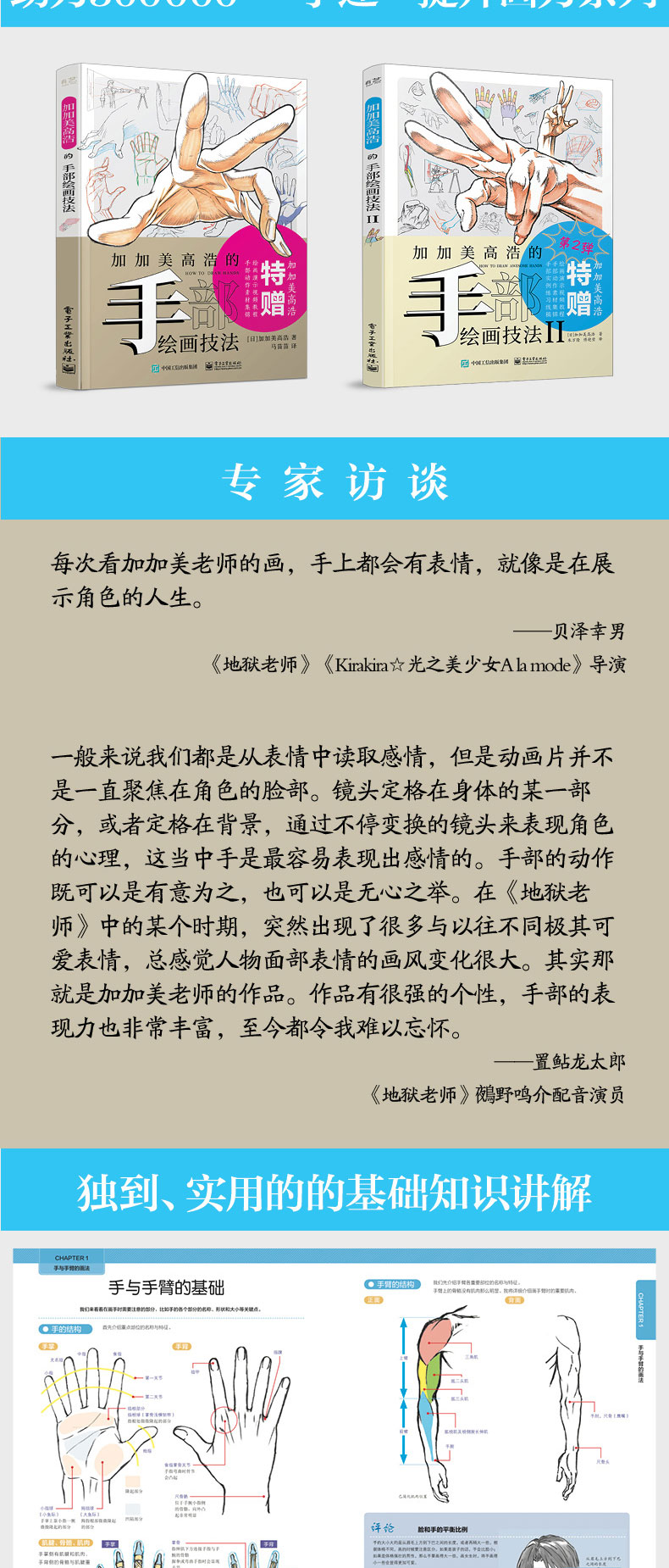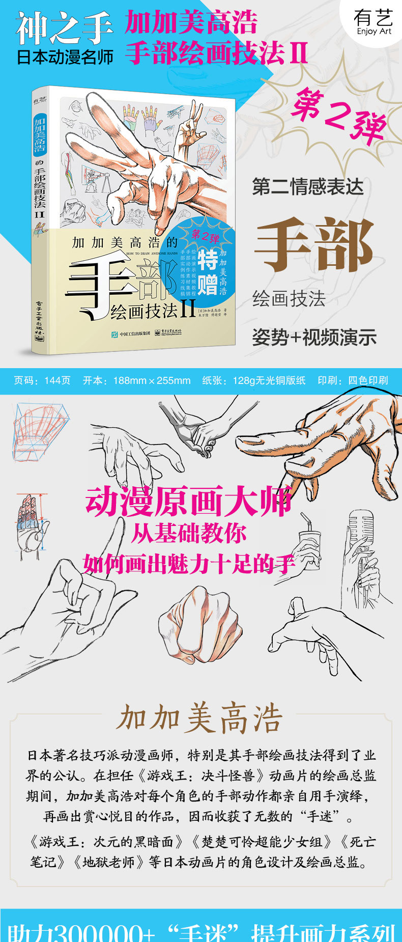 加加美高浩的手部绘画技法 Ⅰ+Ⅱ 手部绘画技法教程 动漫人物手及手臂姿态绘画技法手及手臂解剖结构分析阴影表现上色书籍