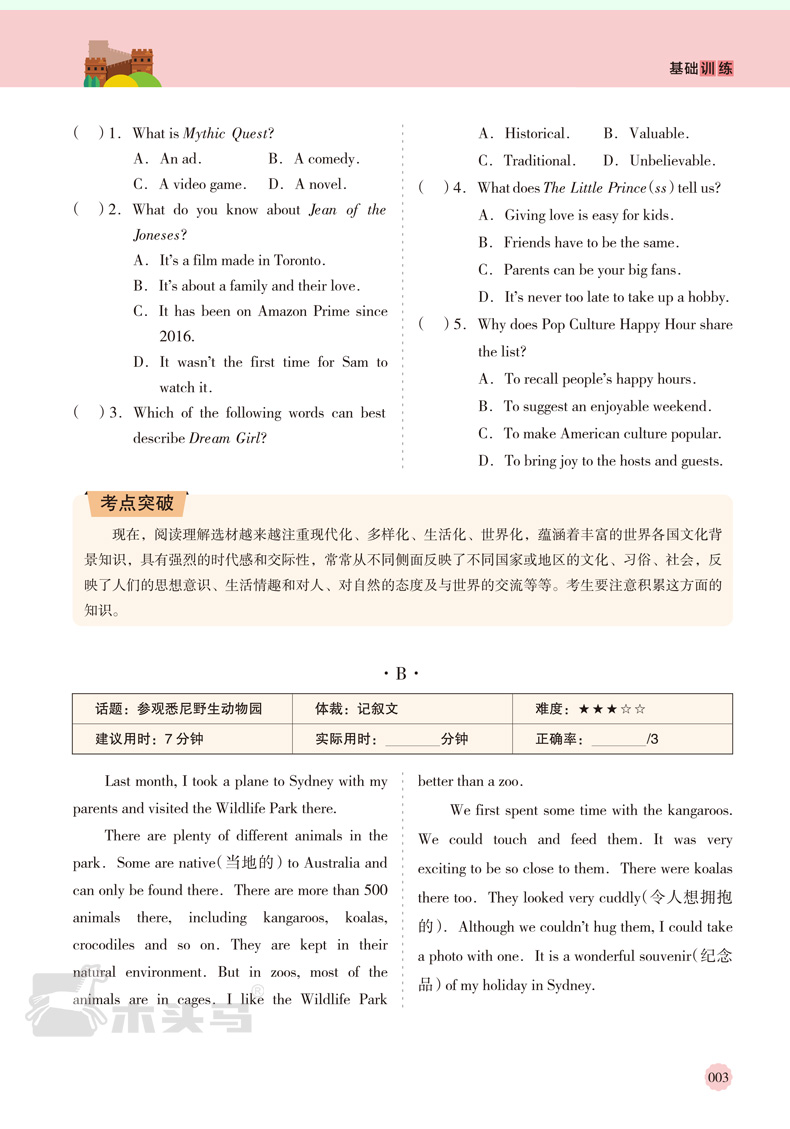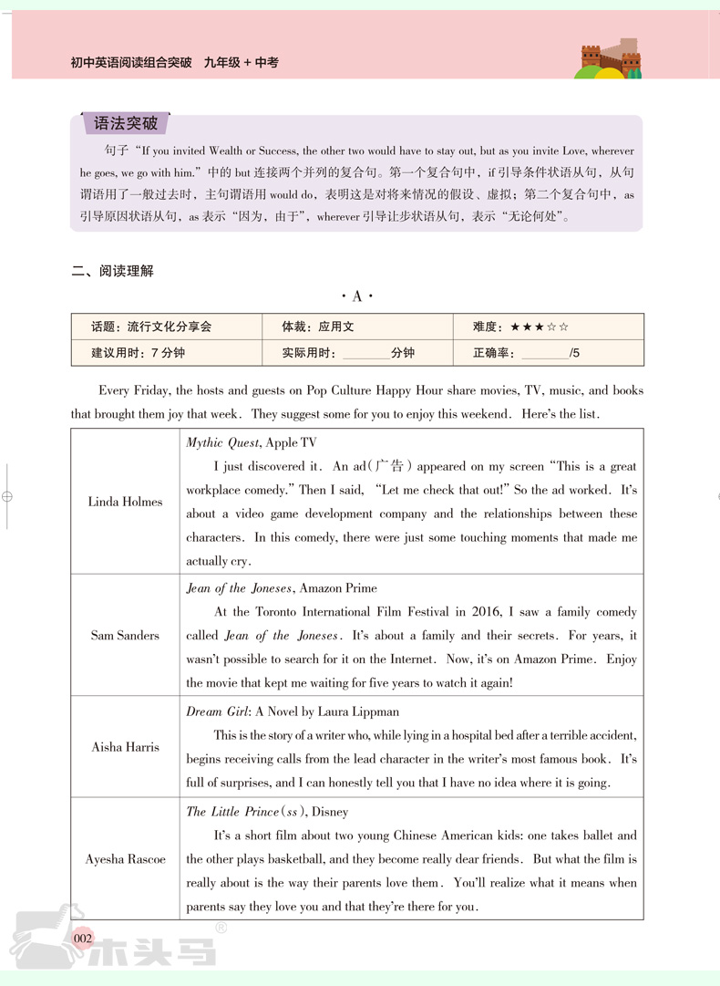 2025版名师特训初中英语阅读组合突破9年级+中考全彩版)(WX)