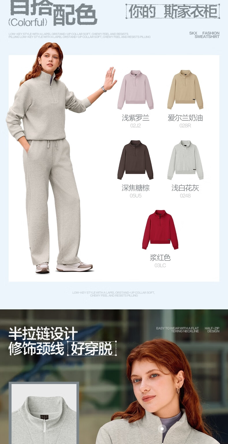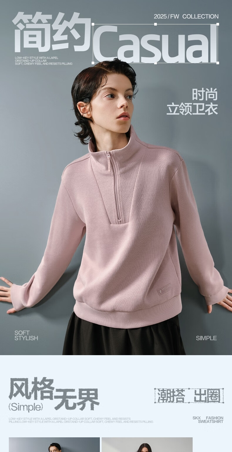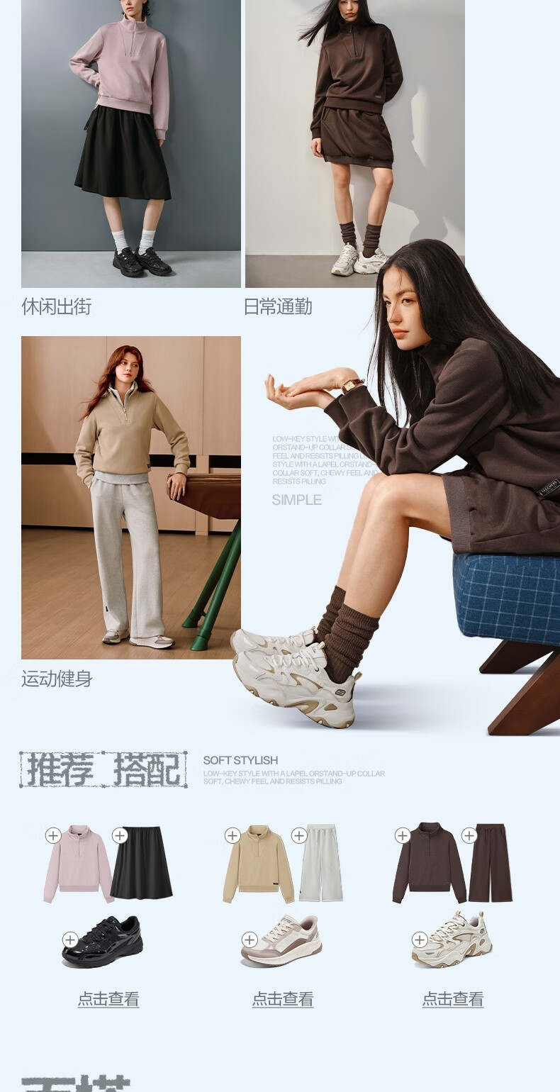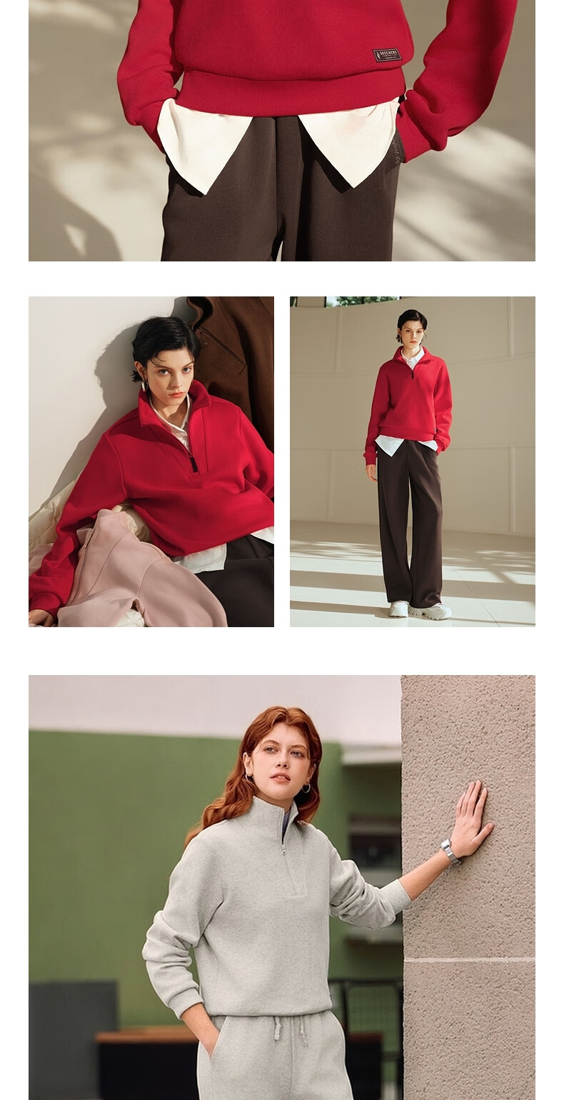 斯凯奇(Skechers)新年礼物针织套头卫衣女2025冬季新款长袖外套休闲运动服L425W012