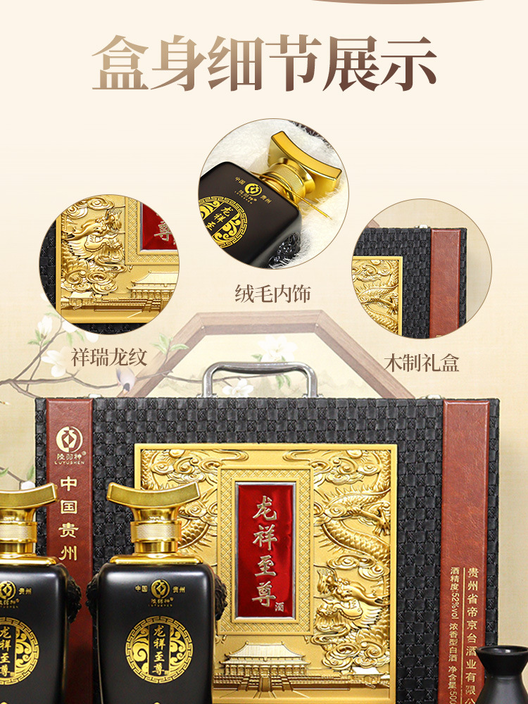 【五件起拍!纯粮白酒龙祥至尊礼盒装】下单即送分酒器,甄选优质原料,古法工艺,匠心酿造,年货高端52度浓香木整箱双瓶手提送礼
