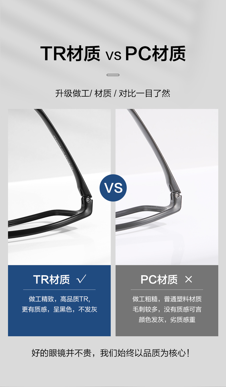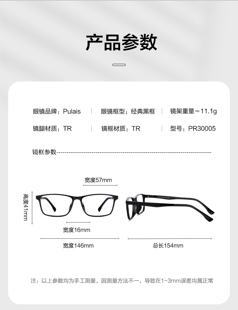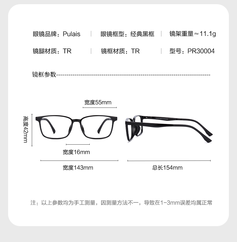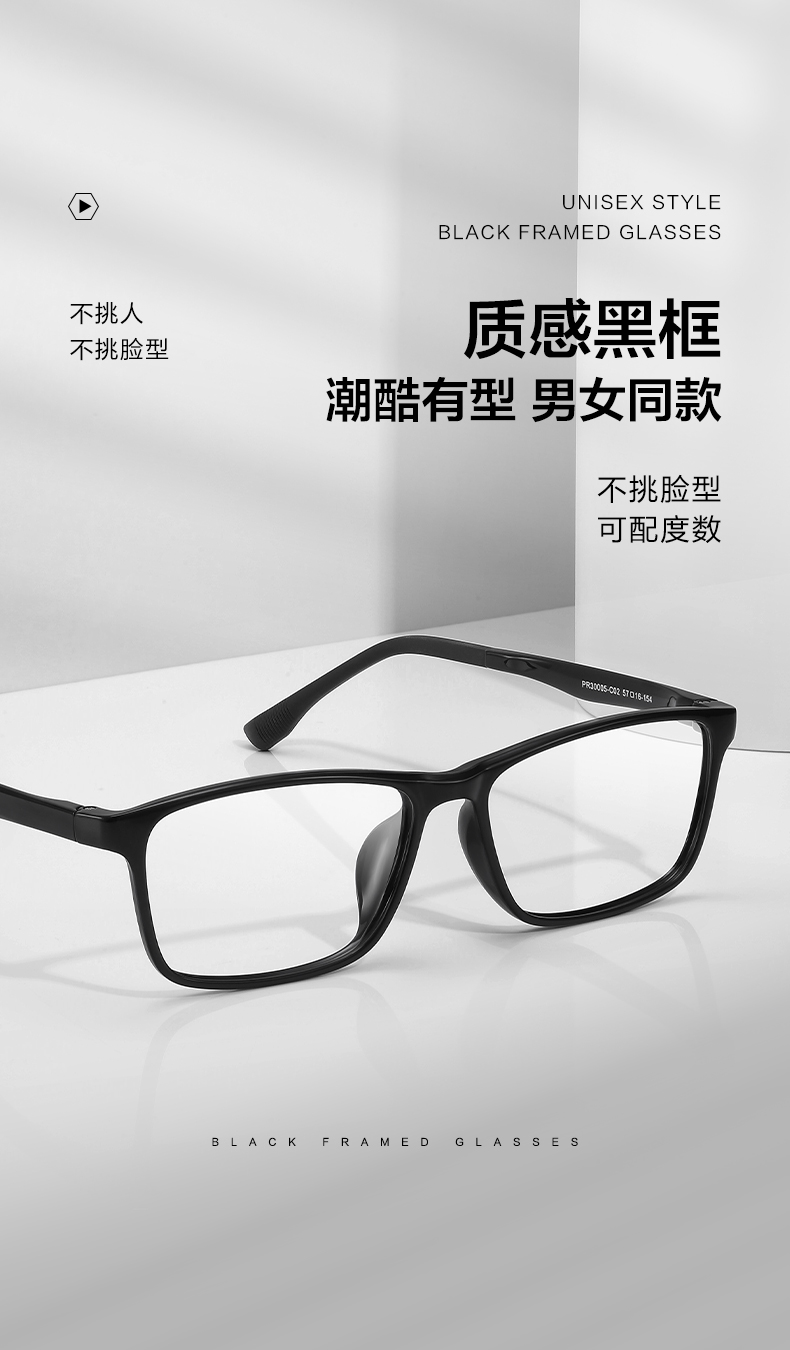 普莱斯光学镜架PR30004/PR30005 质感黑框 超酷有型 男女同款 大码TR材质 三色可选