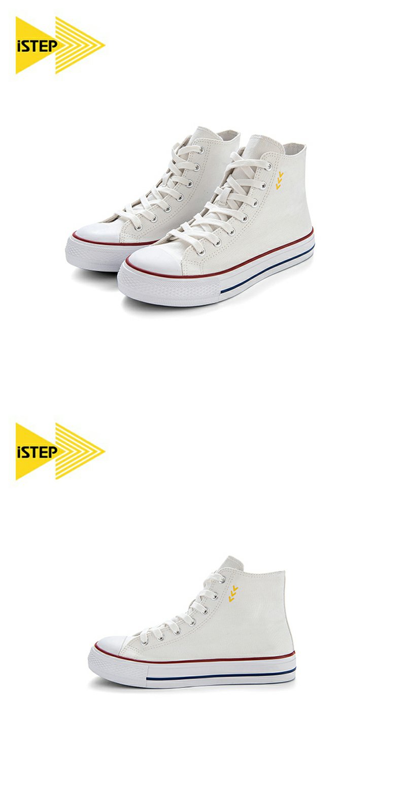【正品】iSTEP高帮帆布鞋男女同款韩版休闲百搭小白鞋女士圆头系带板鞋