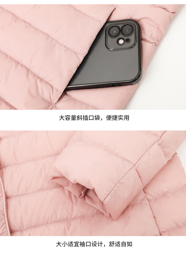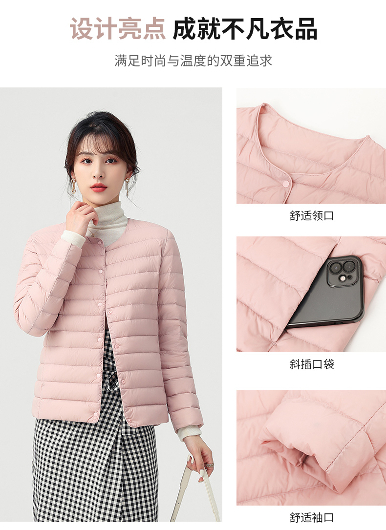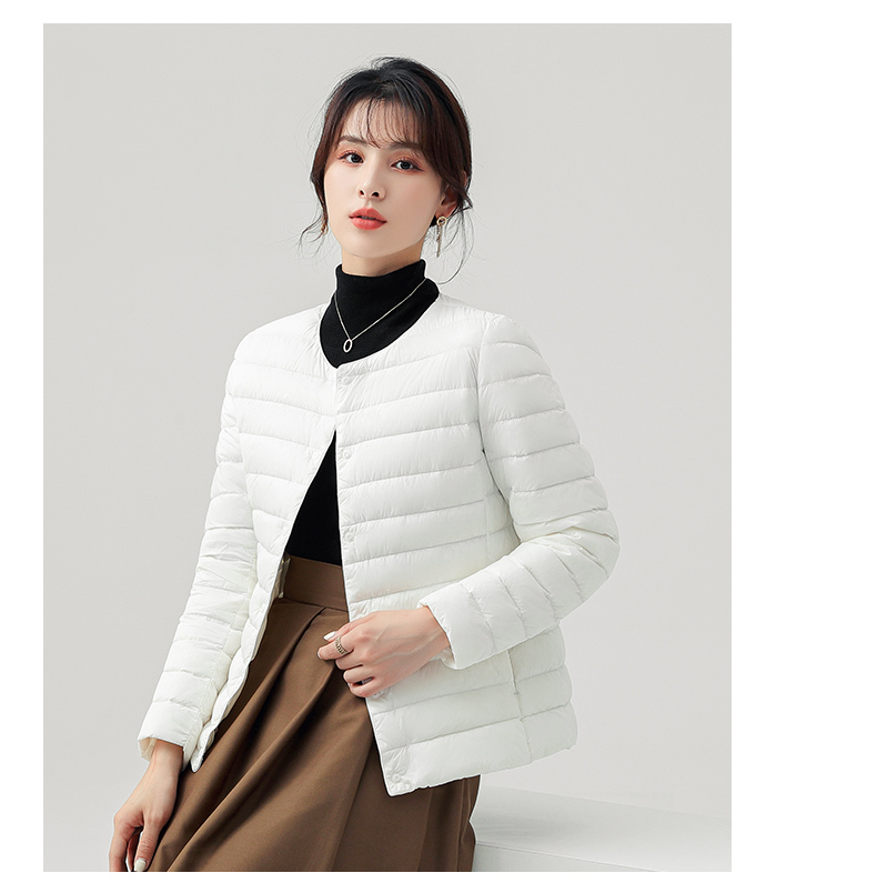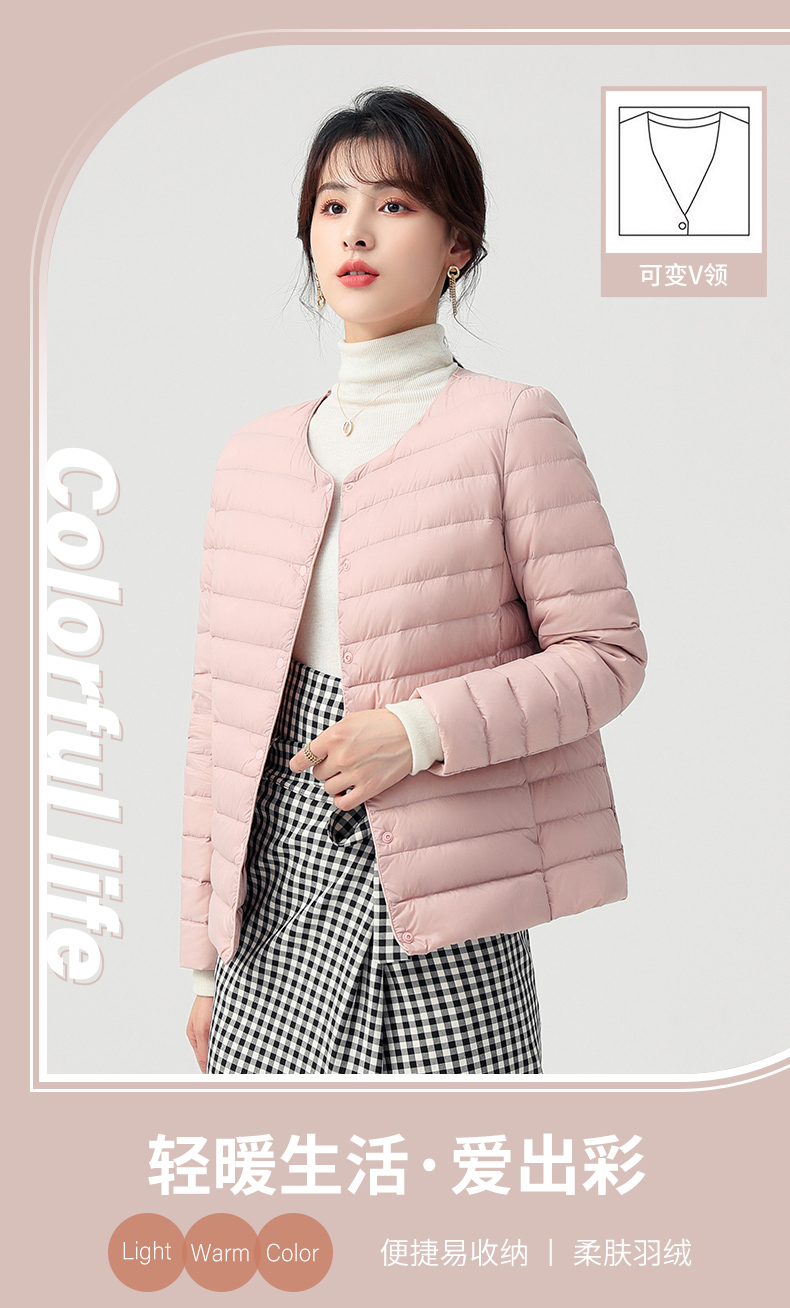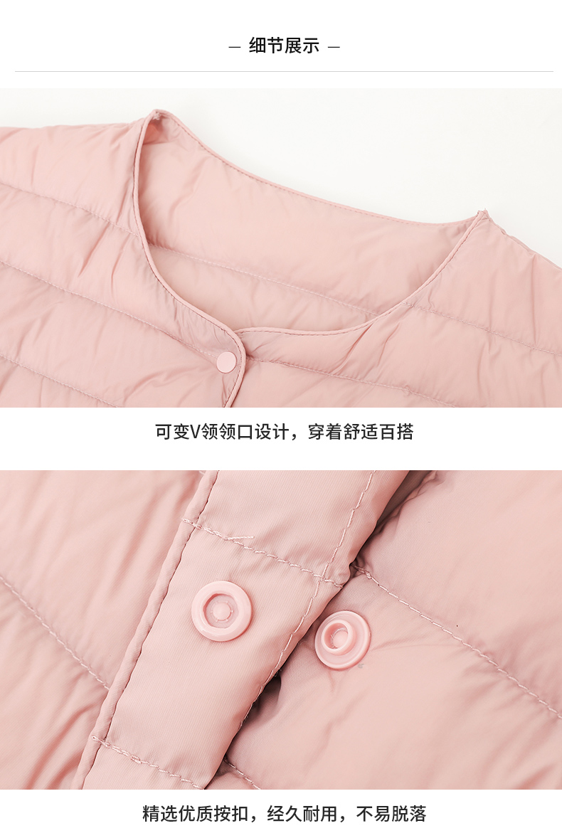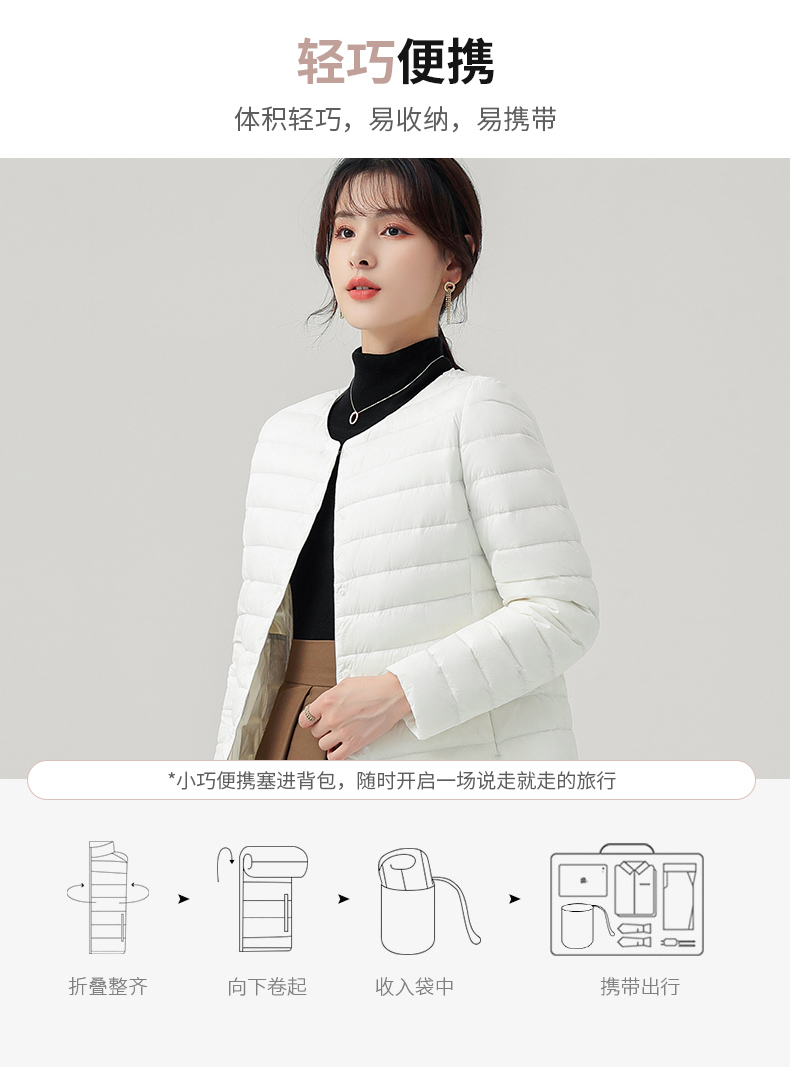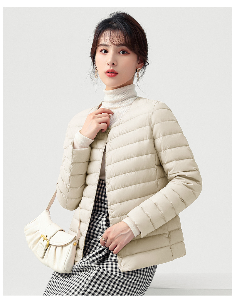 幸运鹿 女款 V领600蓬90白鸭绒排骨羽绒服