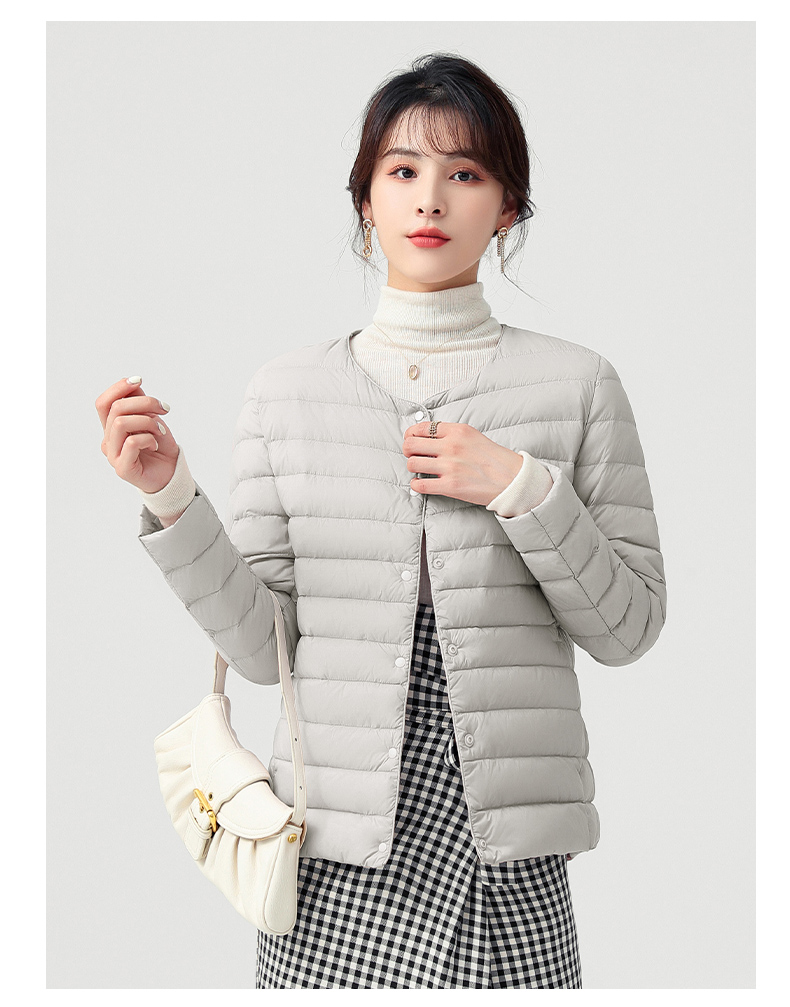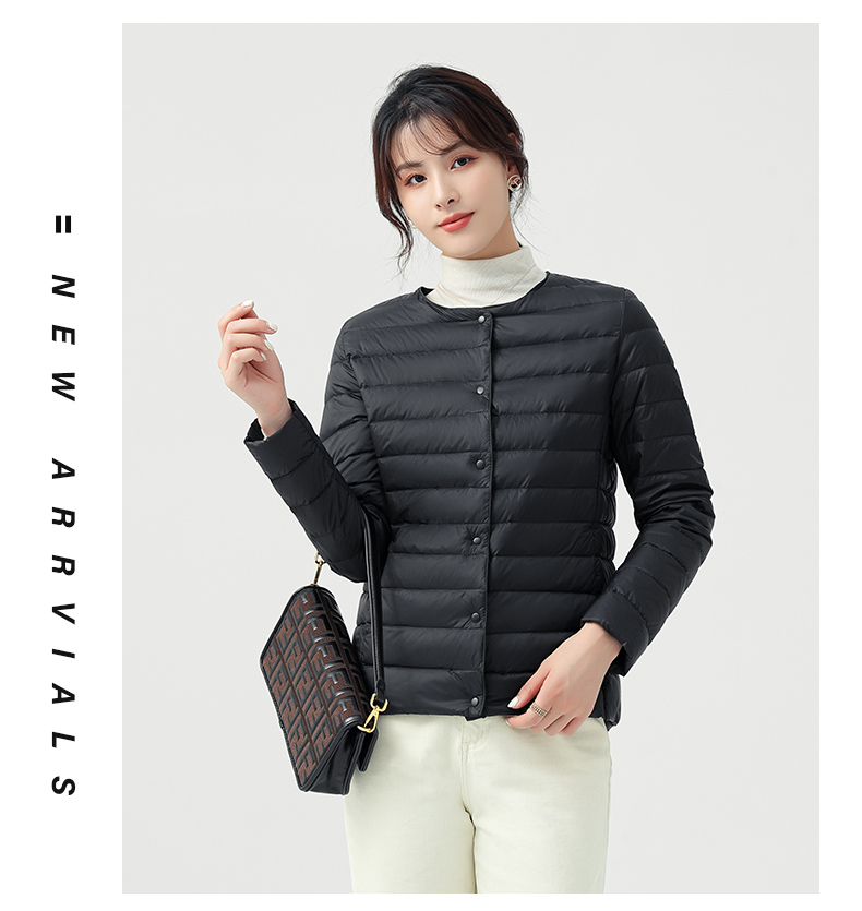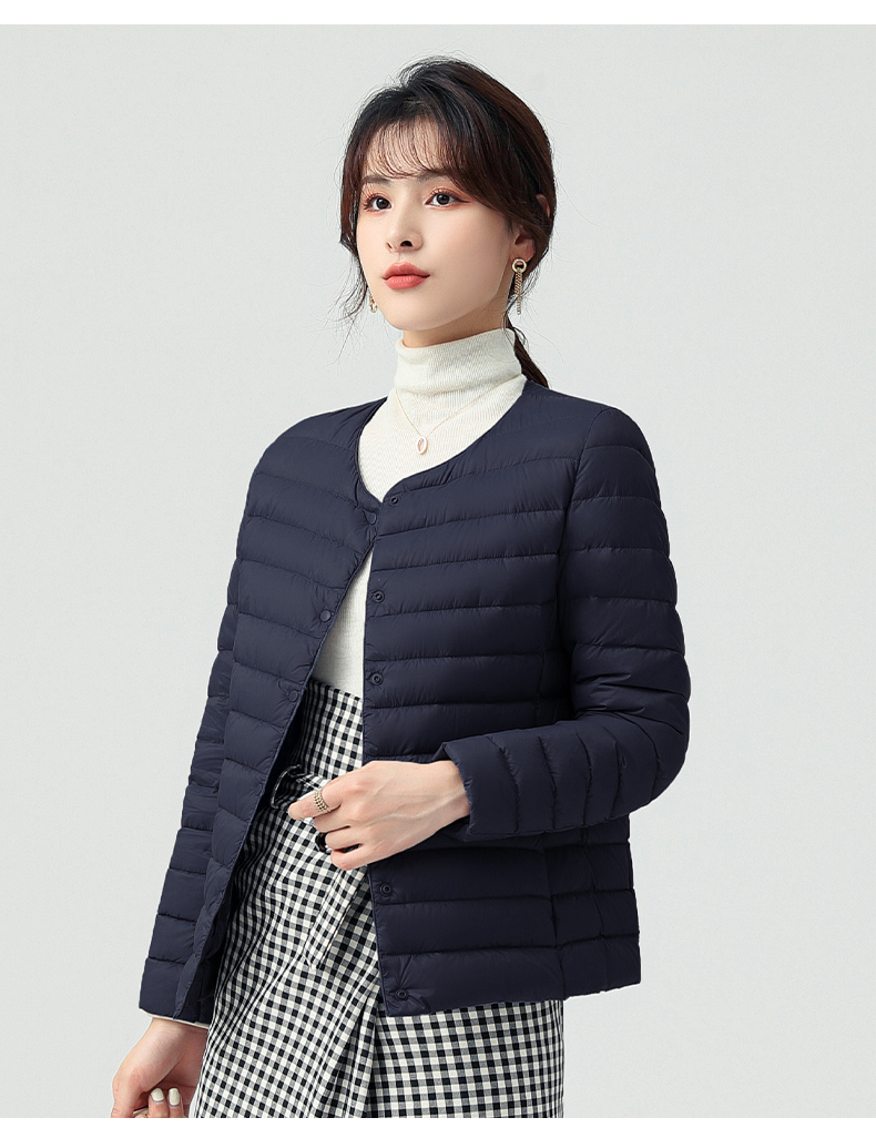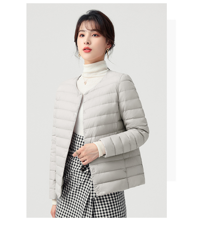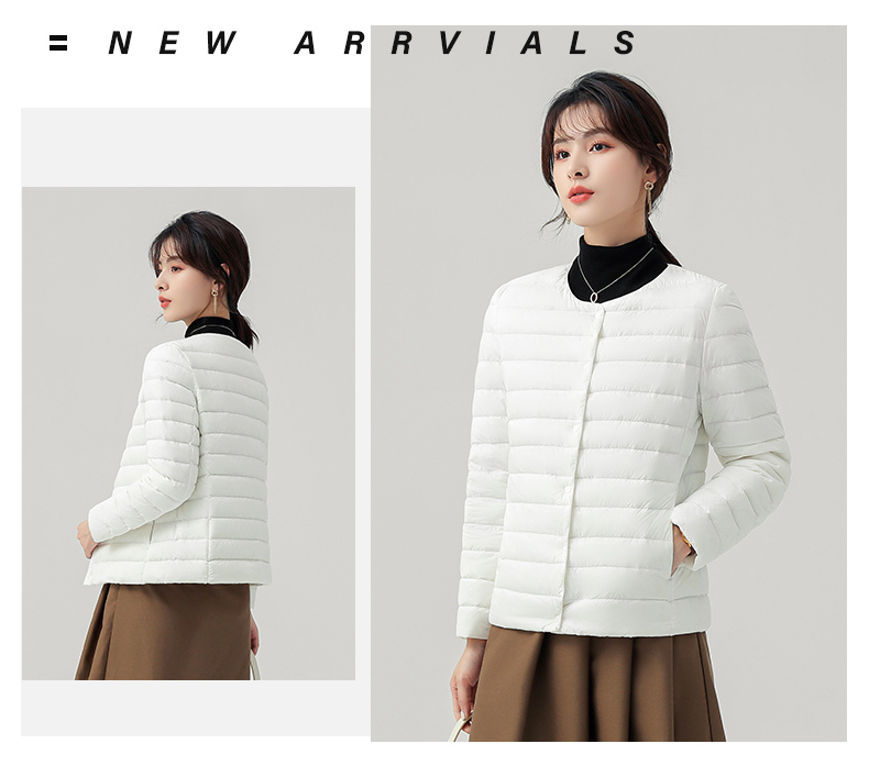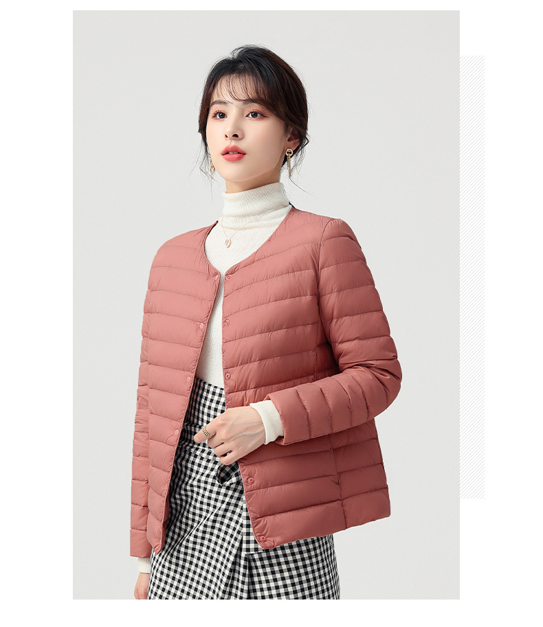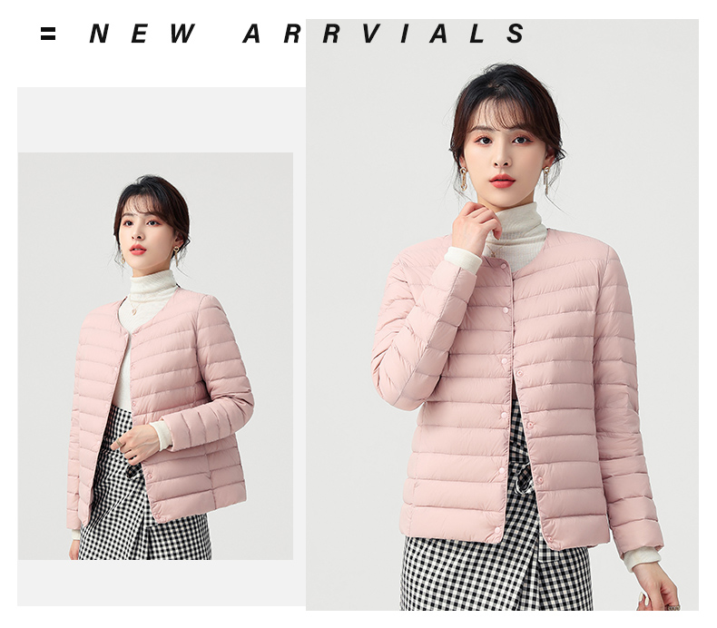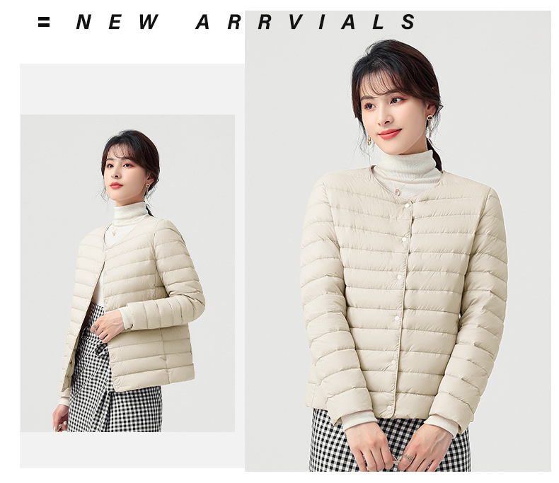 幸运鹿 女款 V领600蓬90白鸭绒排骨羽绒服