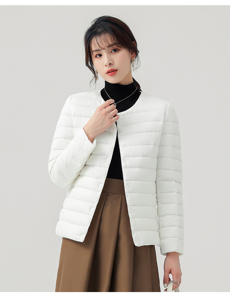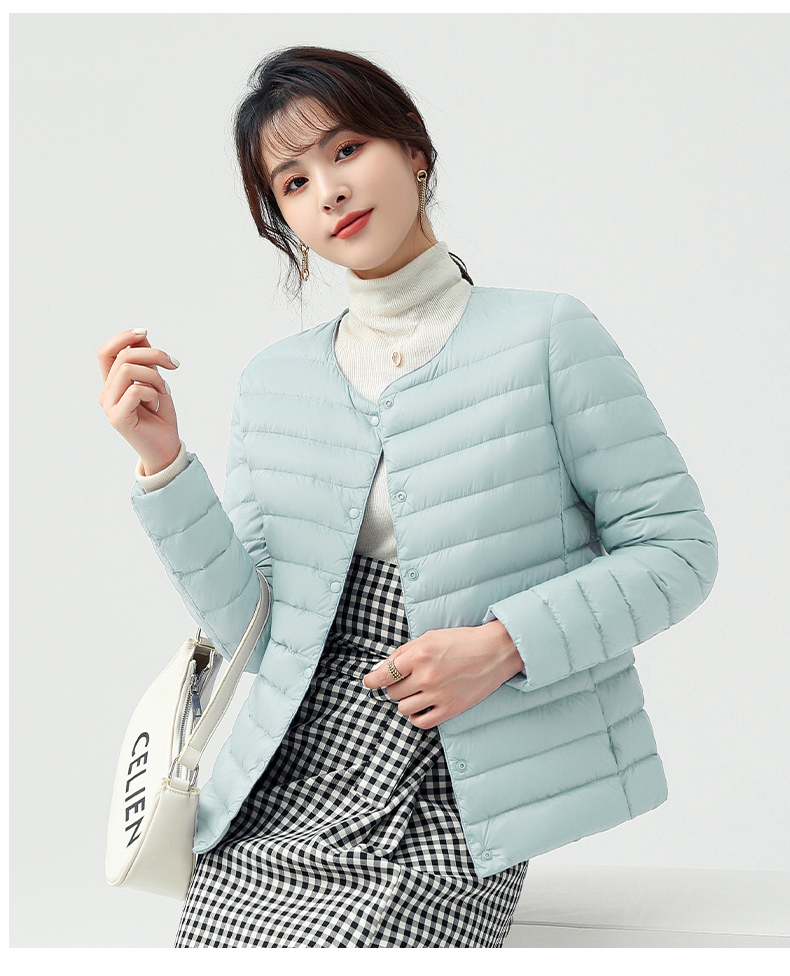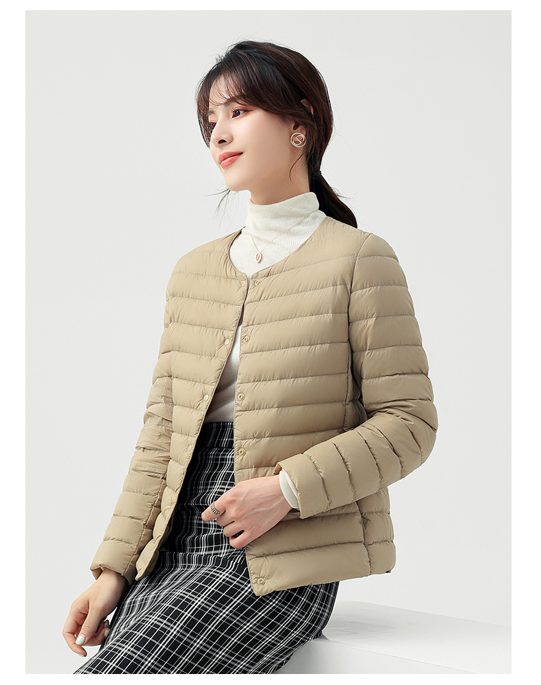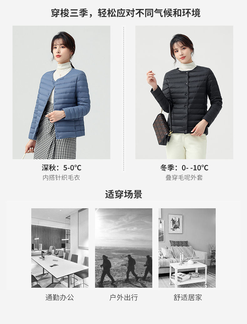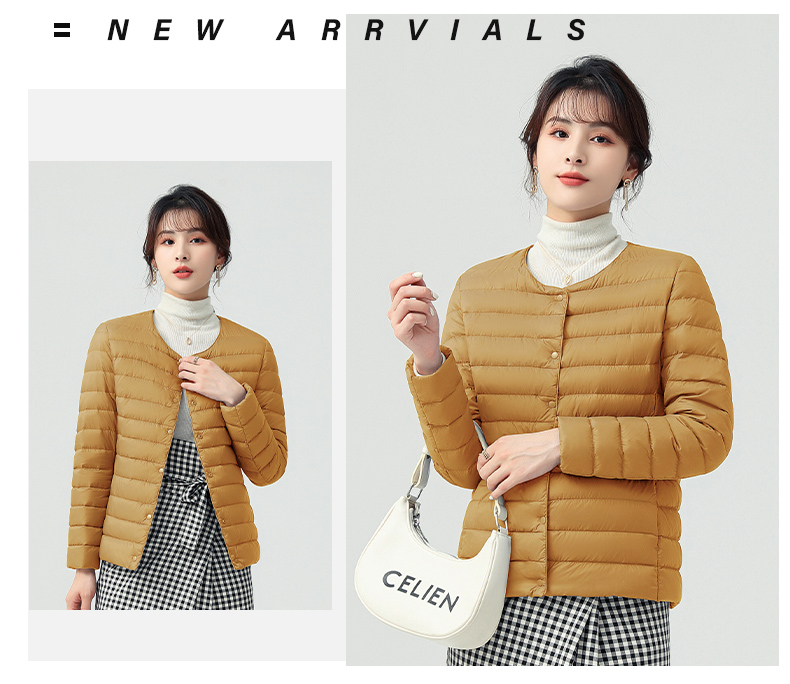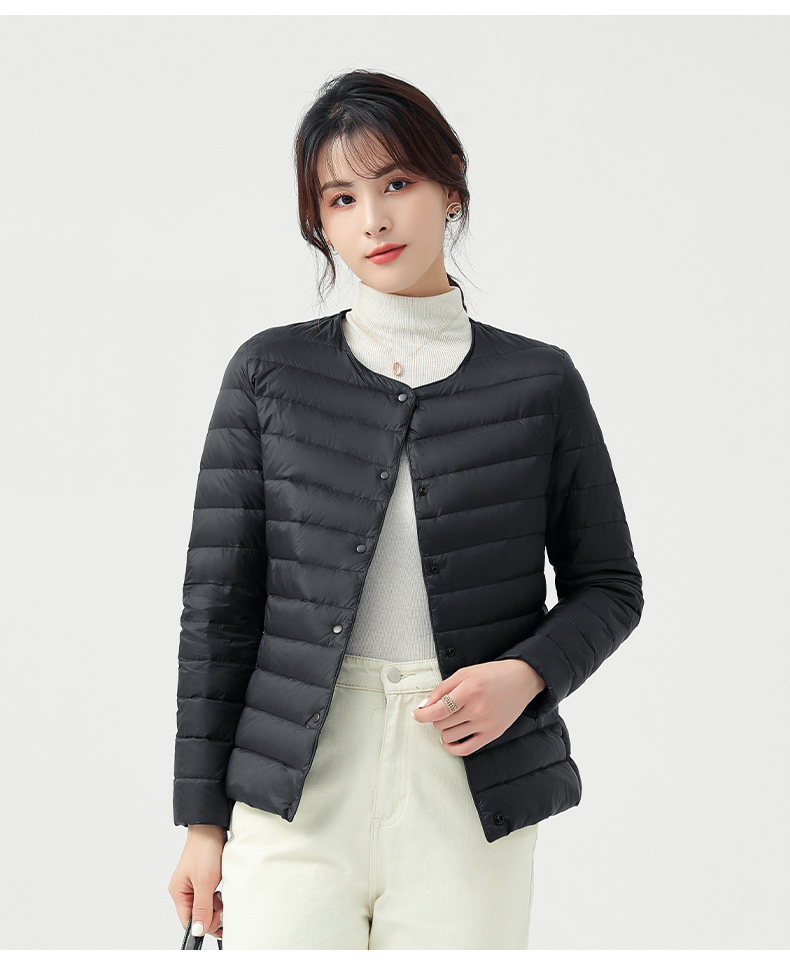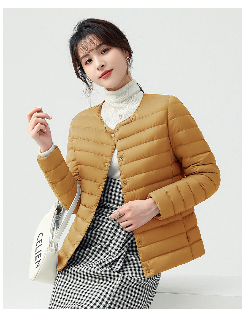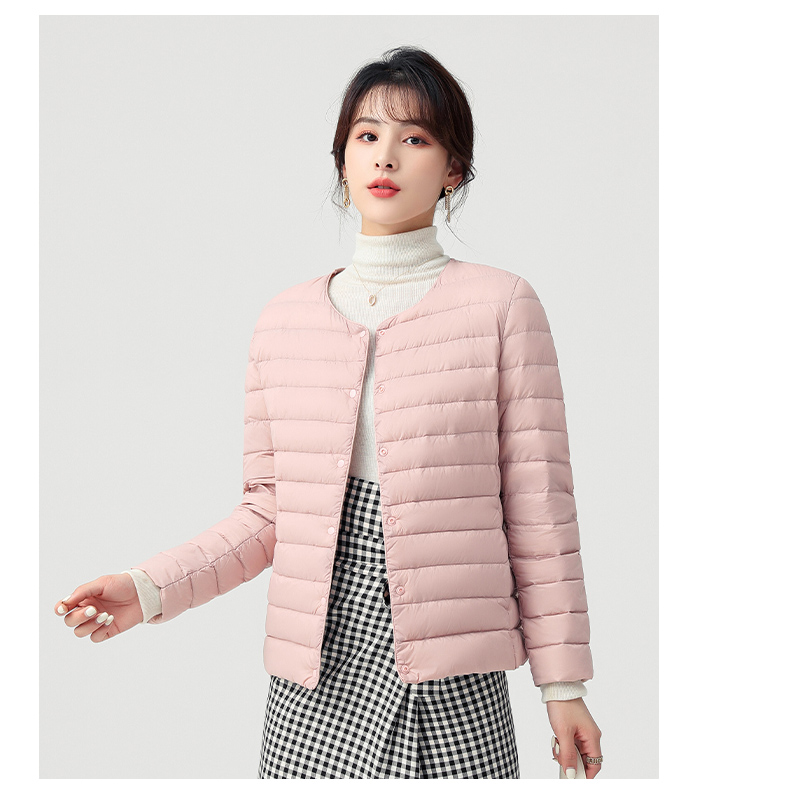 幸运鹿 女款 V领600蓬90白鸭绒排骨羽绒服