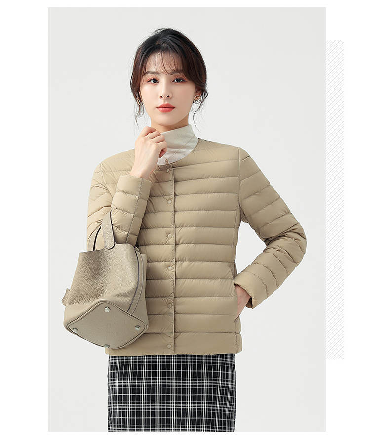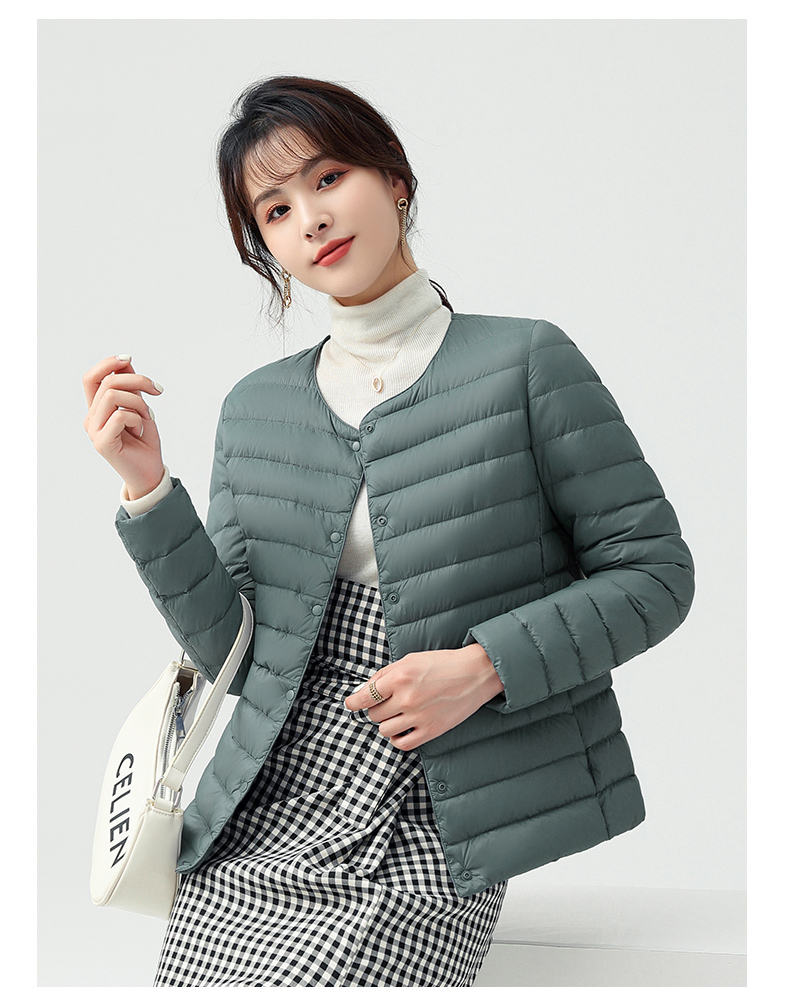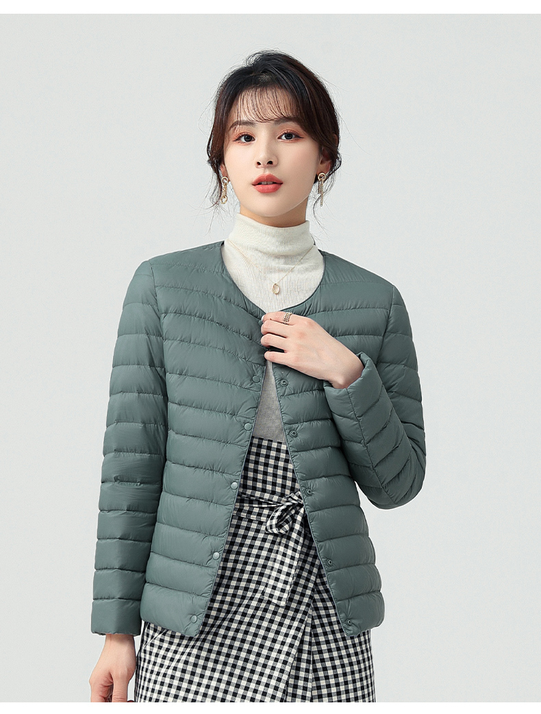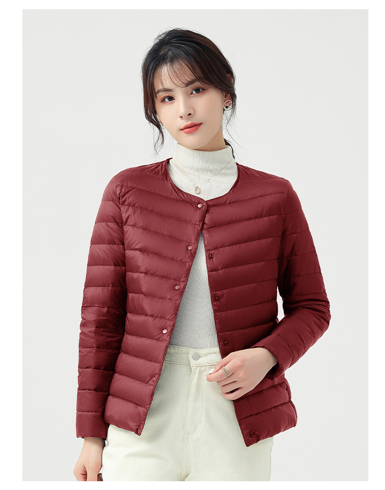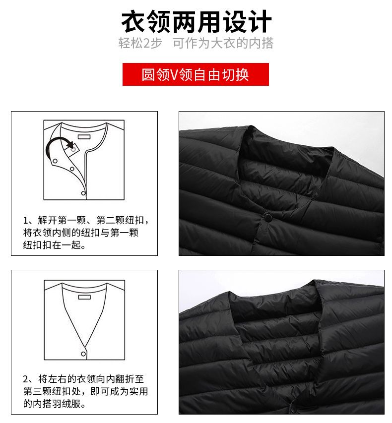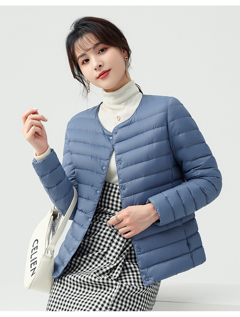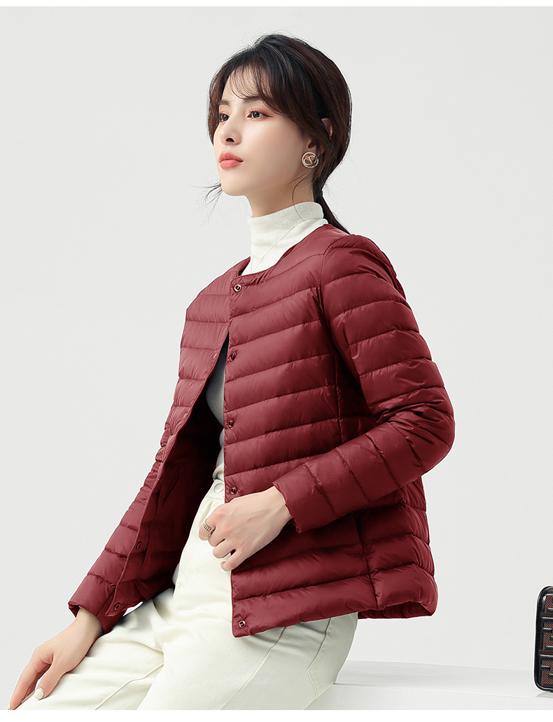 幸运鹿 女款 V领600蓬90白鸭绒排骨羽绒服
