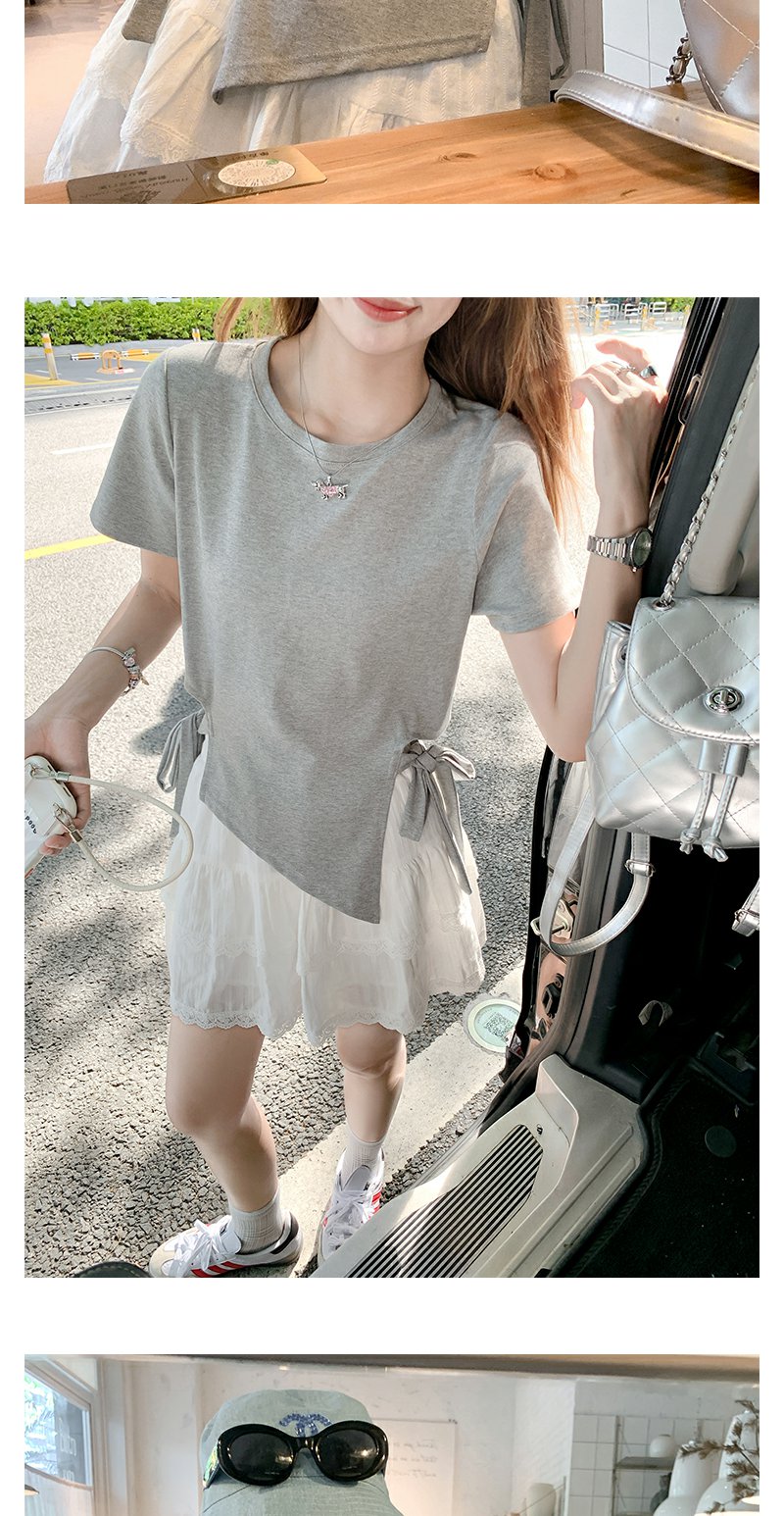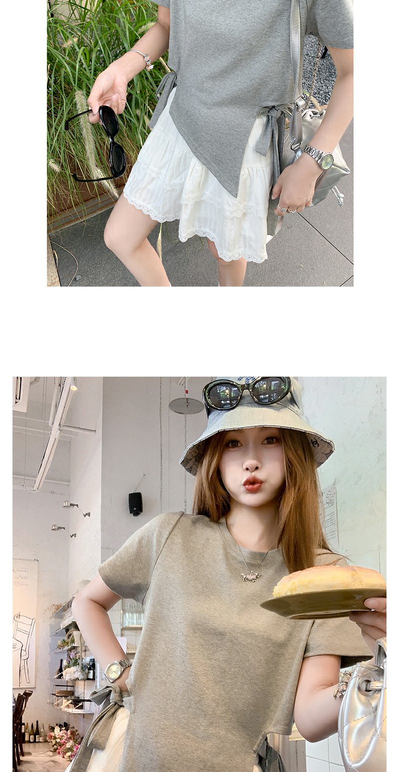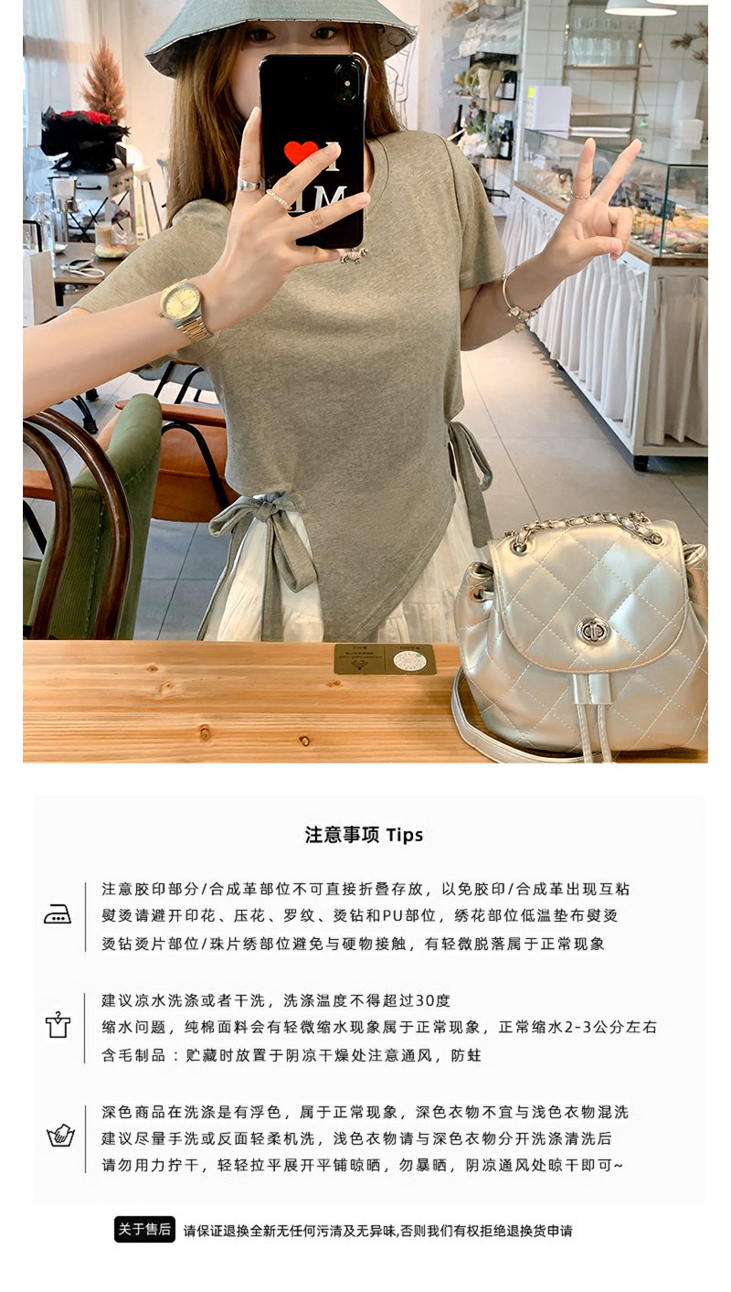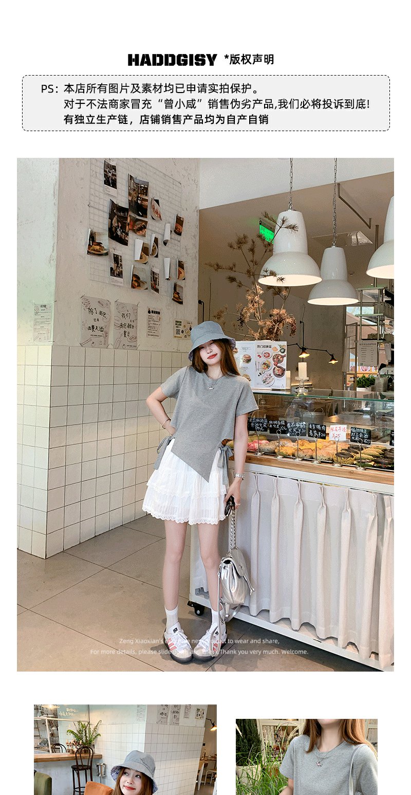 <曾小咸推荐>甜辣不规则下摆绑带圆领短袖T恤