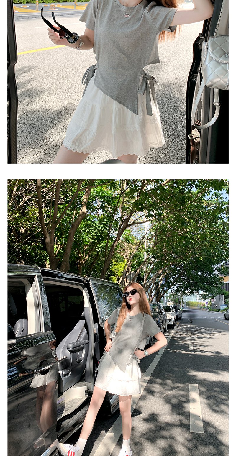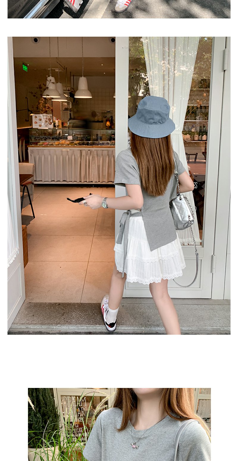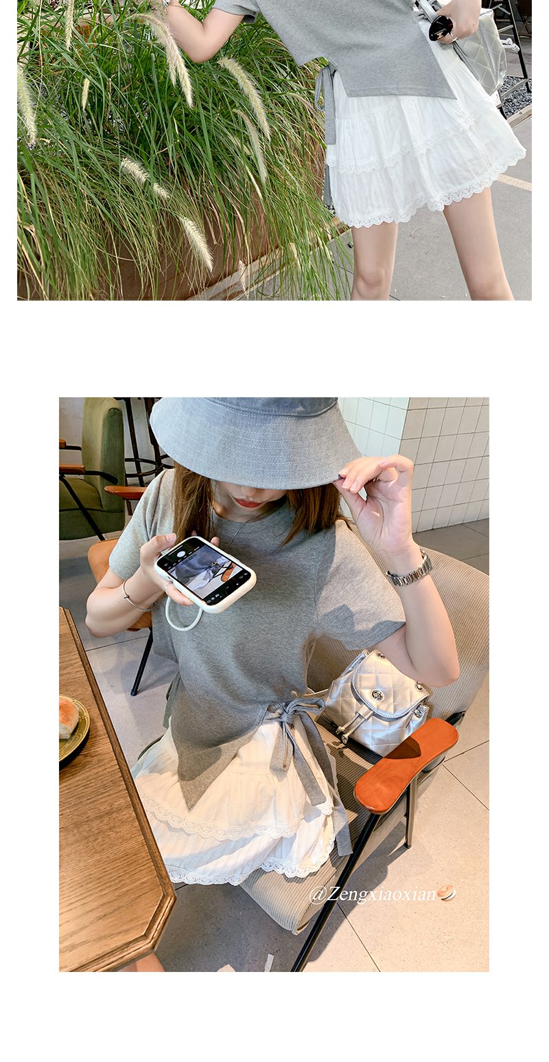 <曾小咸推荐>甜辣不规则下摆绑带圆领短袖T恤