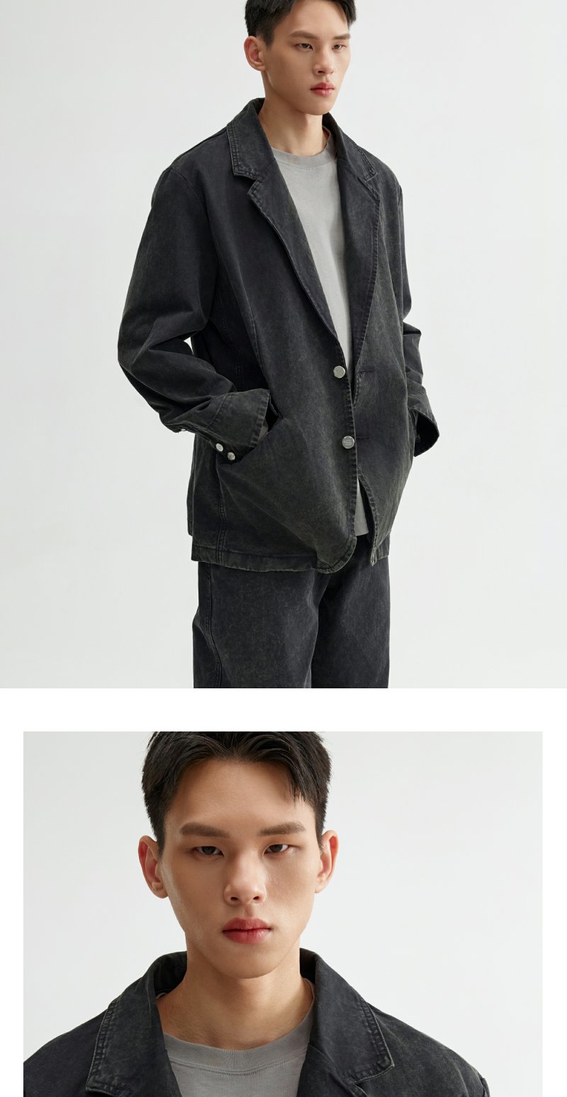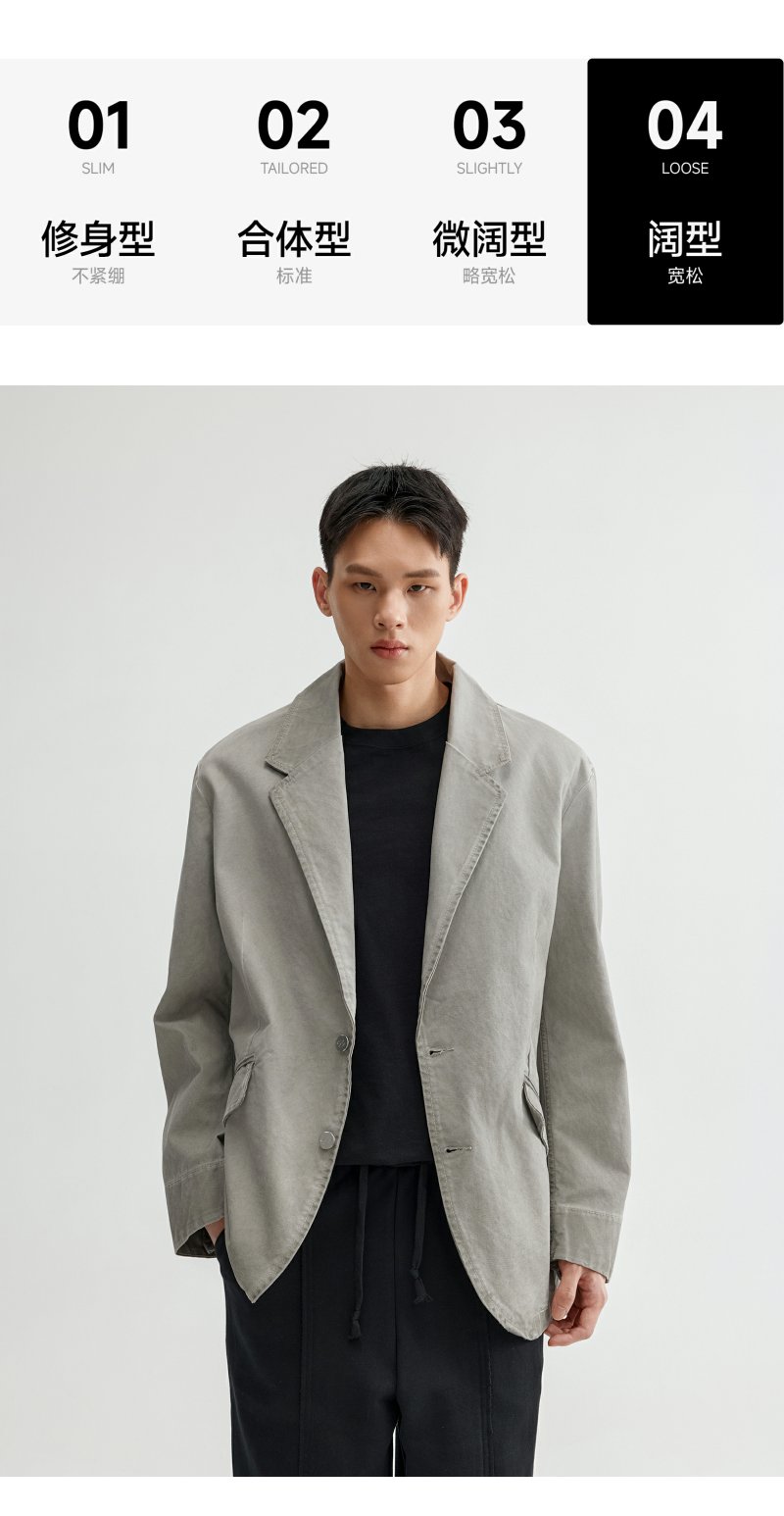 CHINISM赤尘 重磅炒洗做旧西装外套男秋冬复古西服男士外套