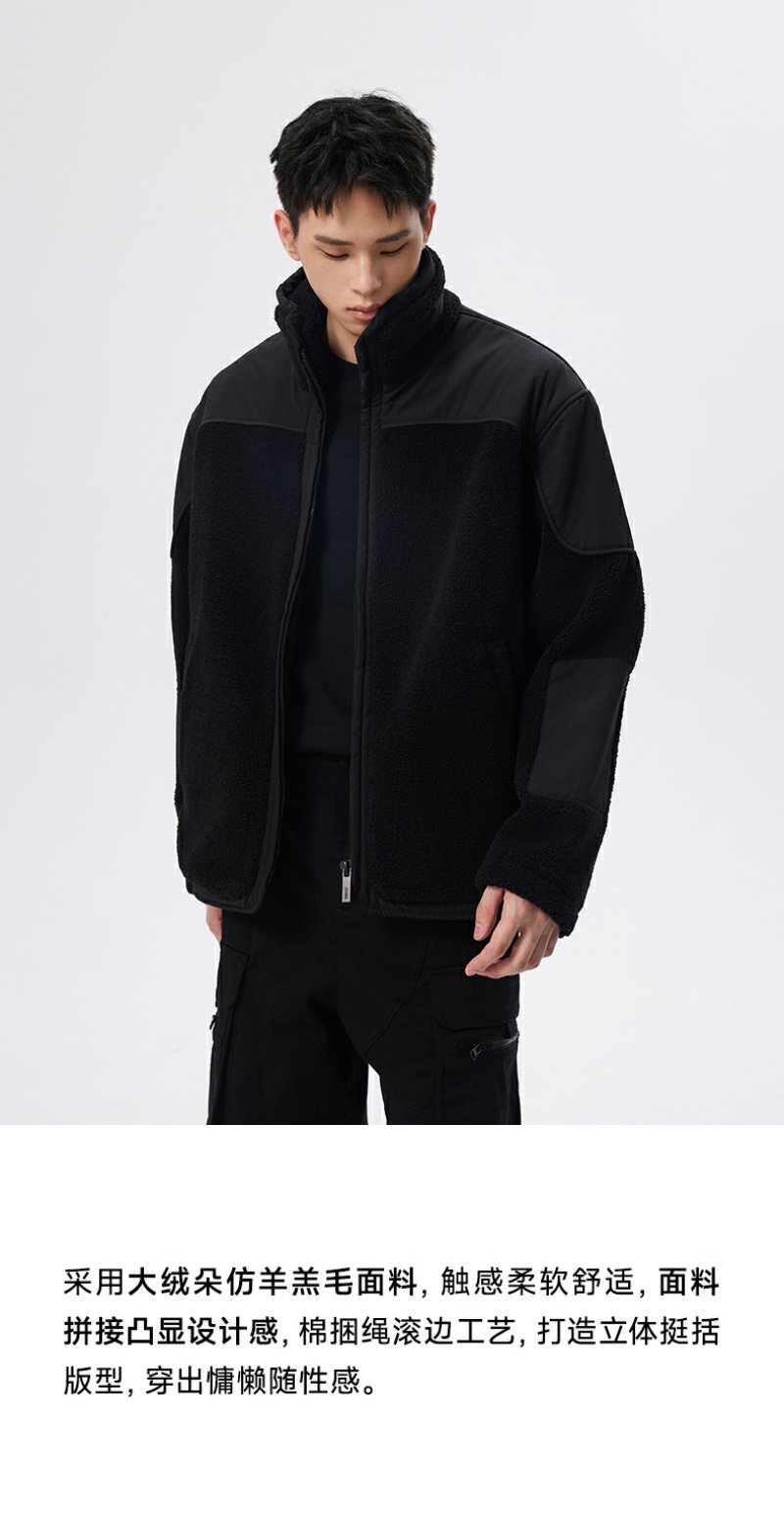 CHINISM赤尘 短款立领仿羊羔毛外套男冬季美式夹克男士羊羔绒棉服