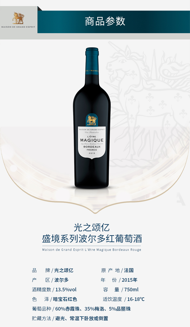 光之颂亿盛境系列波尔多红葡萄酒750ml