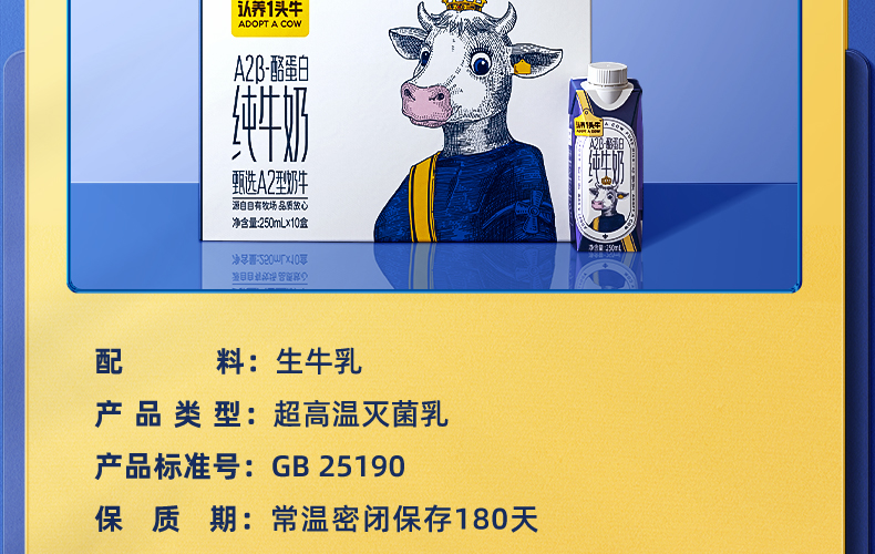 认养一头牛 A2纯牛奶250ml×10盒梦幻盖
