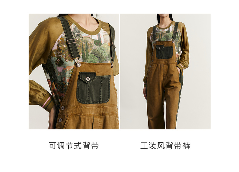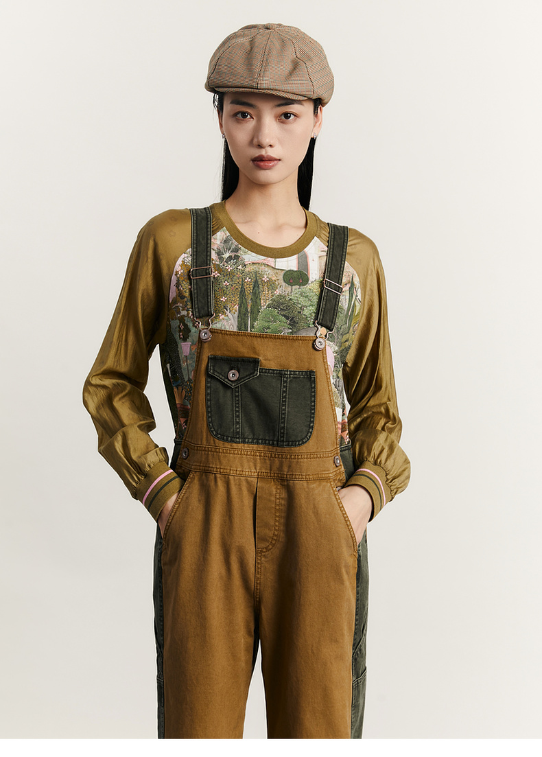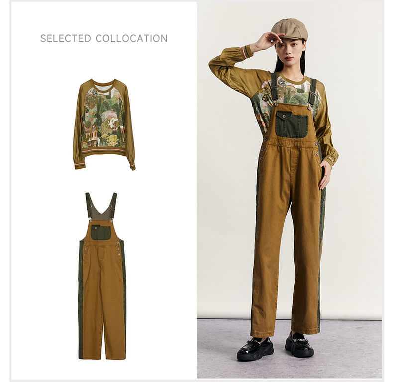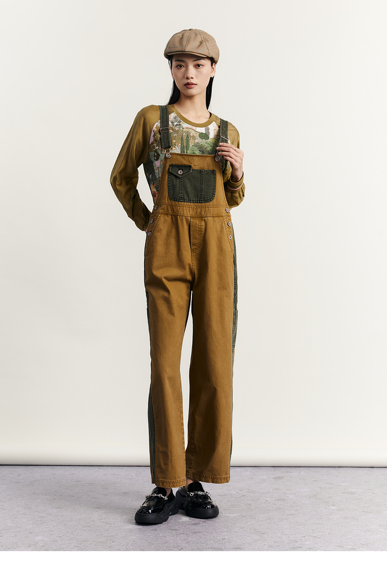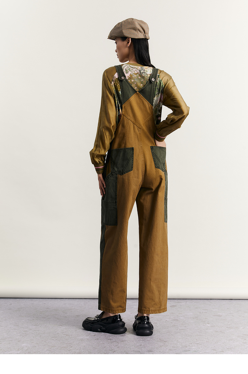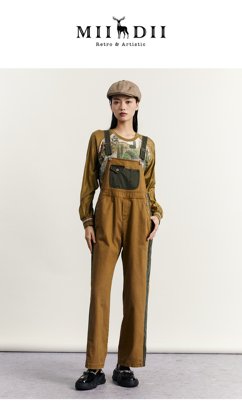 谜底背带裤女2023秋新款复古拼接设计感宽松休闲裤长裤233MK1130