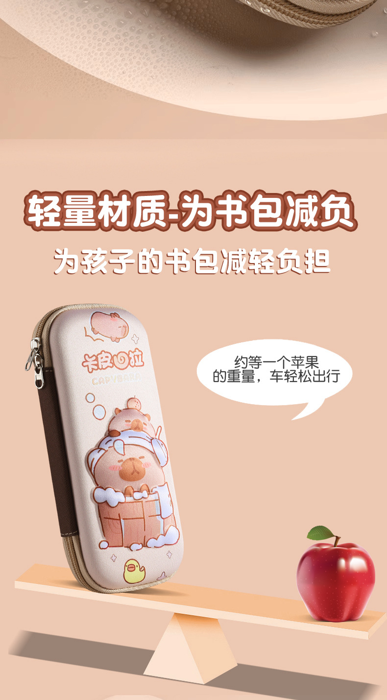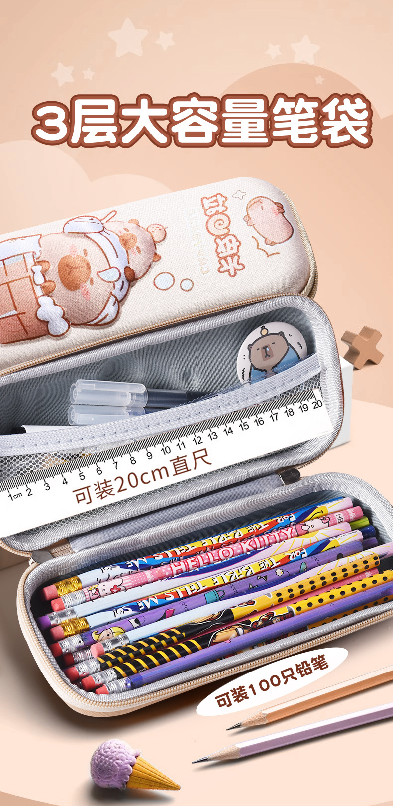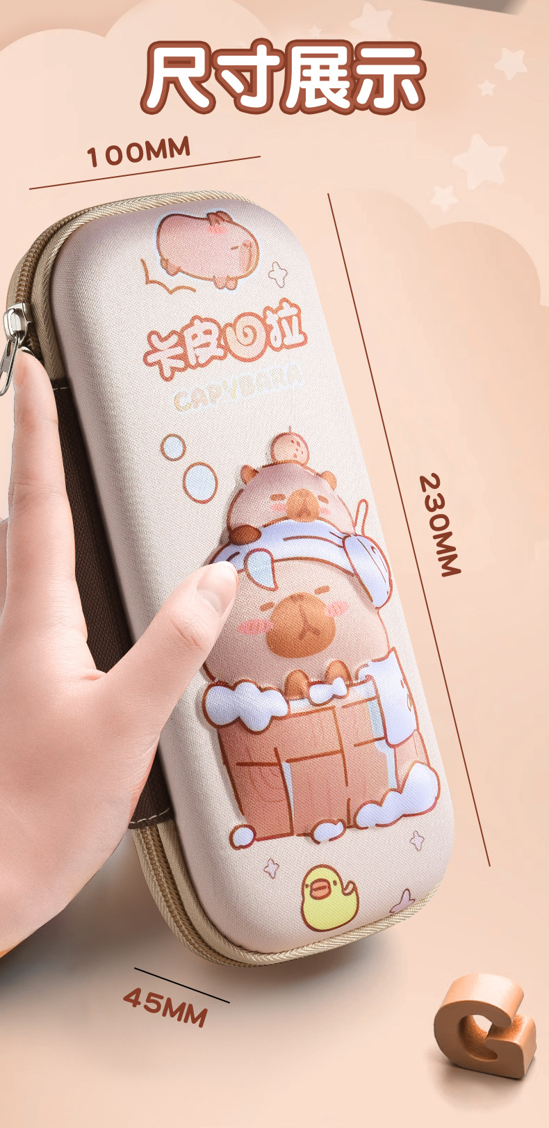 新款新品卡皮巴拉大容量文具盒小学生可爱铅笔盒卡通3d立体笔袋开学季学习用品新款书包补习袋