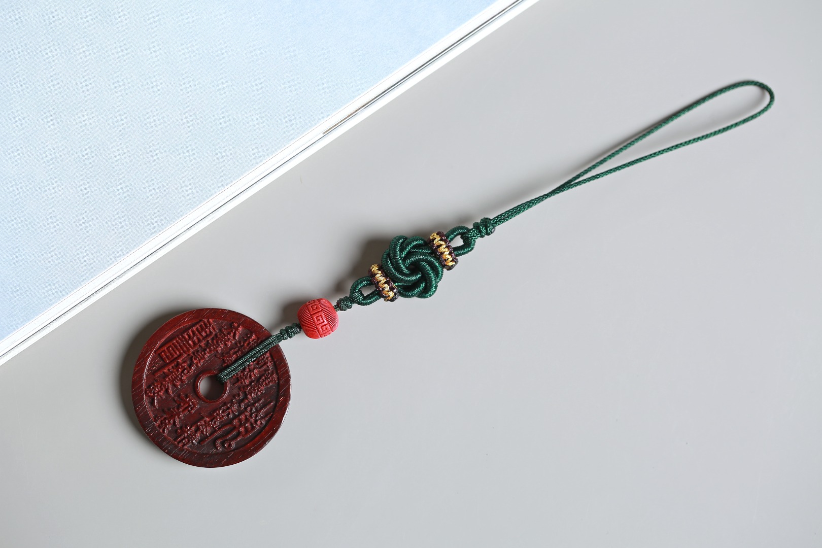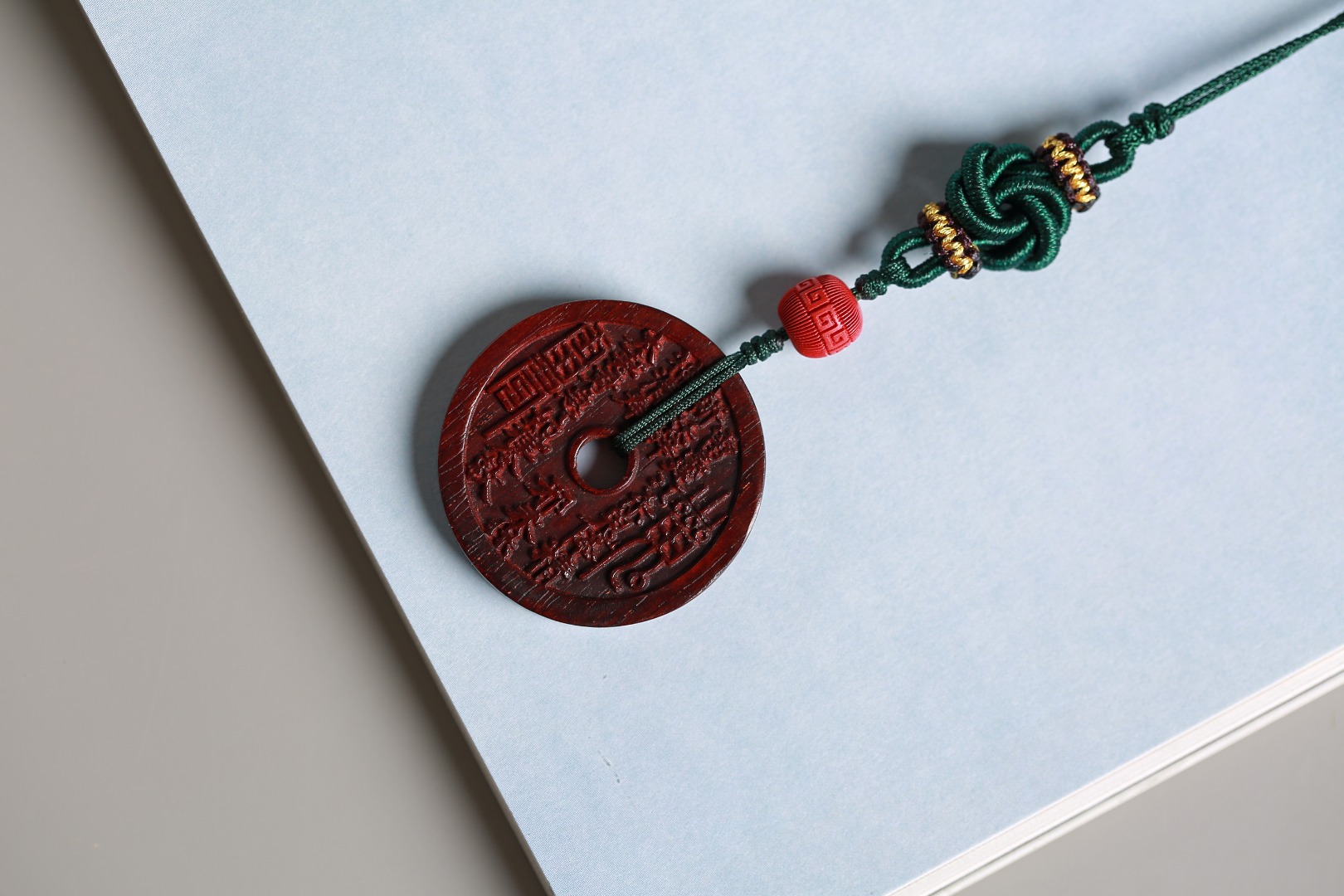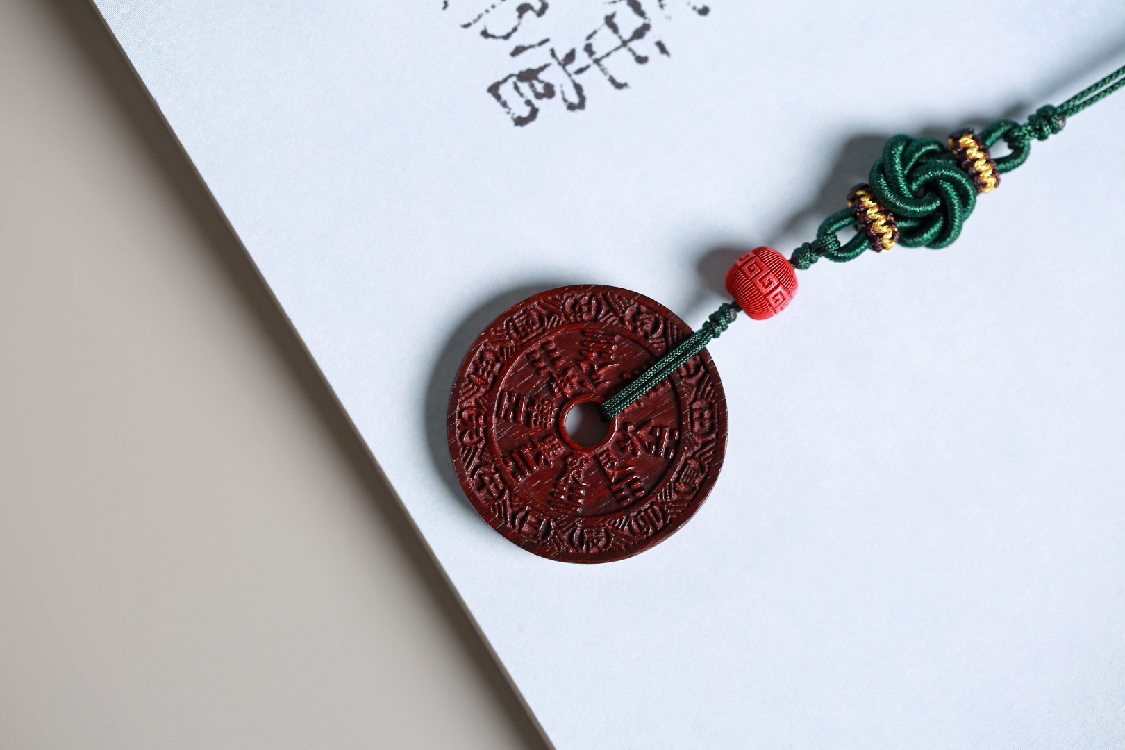 配件:紫檀山鬼花钱牌小/朱砂掐丝回纹珠/曼陀罗编结