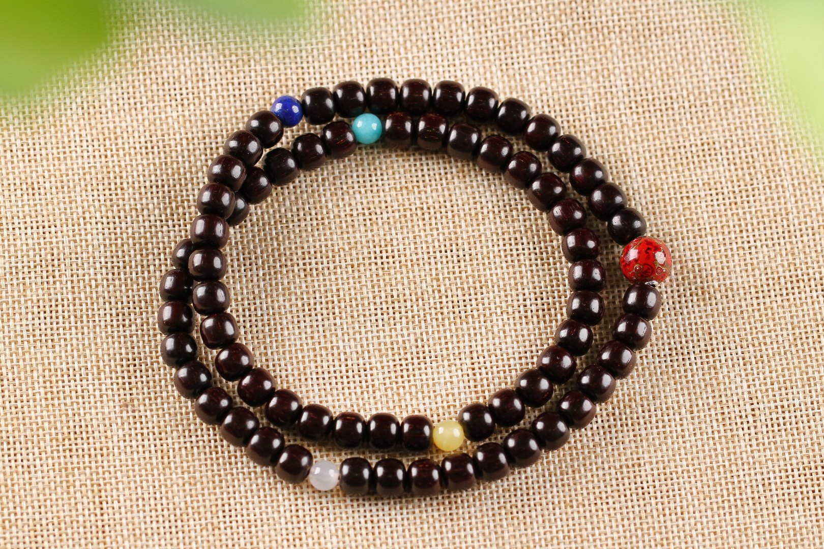 【看见执着】采用0.7x0.8型制的印度小叶紫檀制作,经典耐看,颗粒迷你,装饰青金、蜜蜡、玛瑙、天河石点缀,充满色彩之美,对于宇宙来讲,我们每个人都很渺小,但是为人生的执着坚持,都很美,手艺人也是一样。