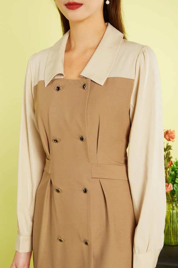 EVA OUXIU伊华欧秀 蕾丝钉珠气质连衣裙 9293