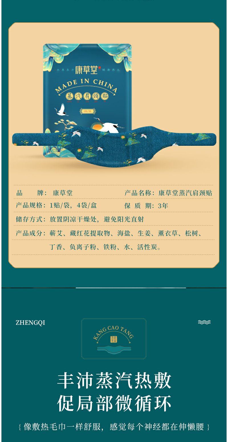 【缓解疲劳肩颈保暖驱寒】康草堂肩颈贴艾草艾灸贴蒸汽热敷4片/盒*4盒