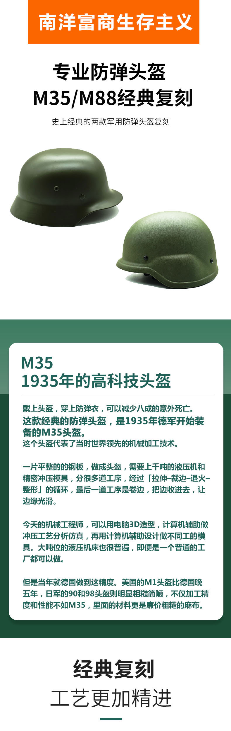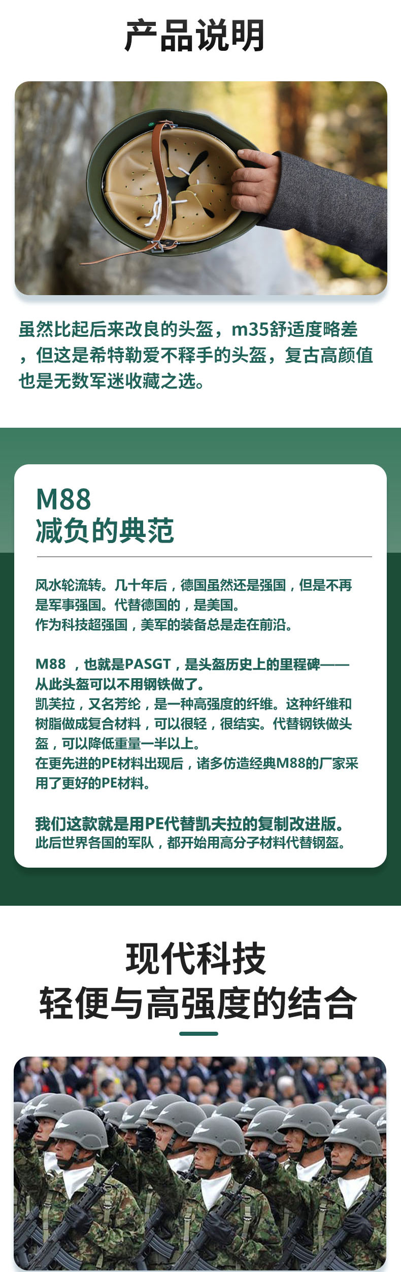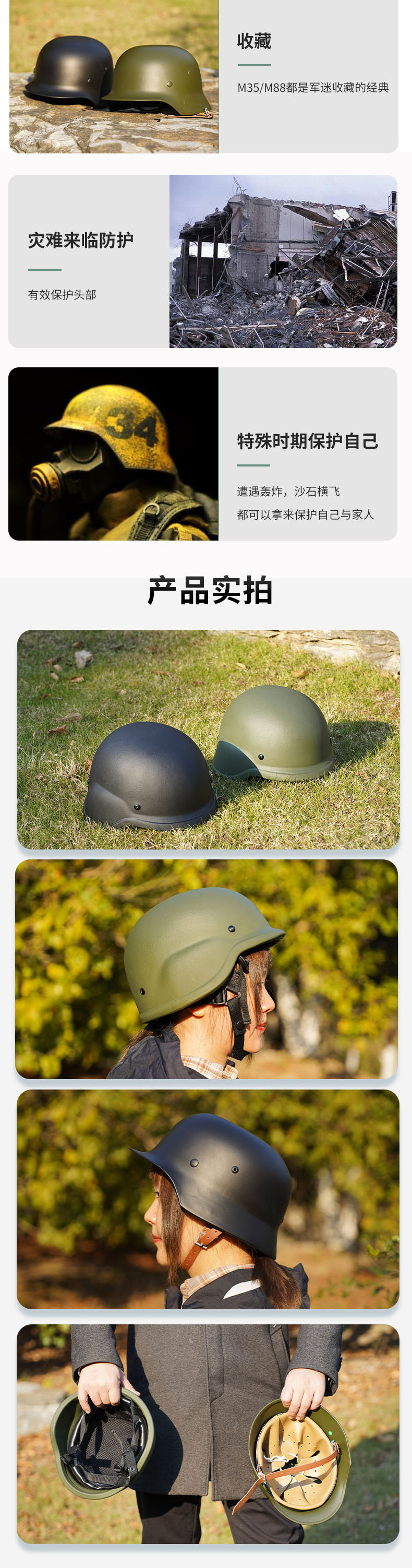 M35、M88:经典的军用钢盔PE防弹头盔复刻