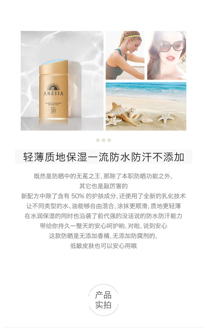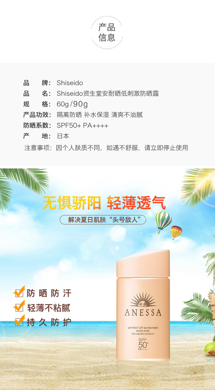 SHISEIDO 资生堂安耐晒小金瓶防晒霜乳液 大毫升装90ml 新老包装随机发