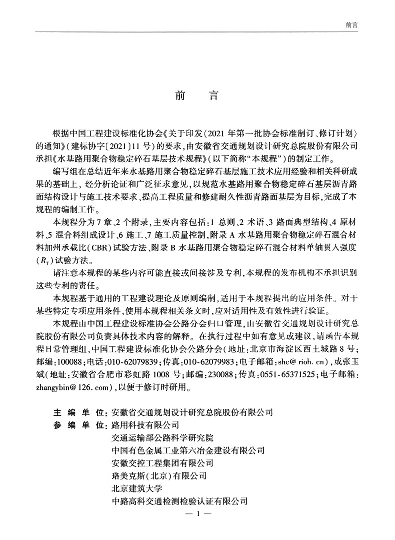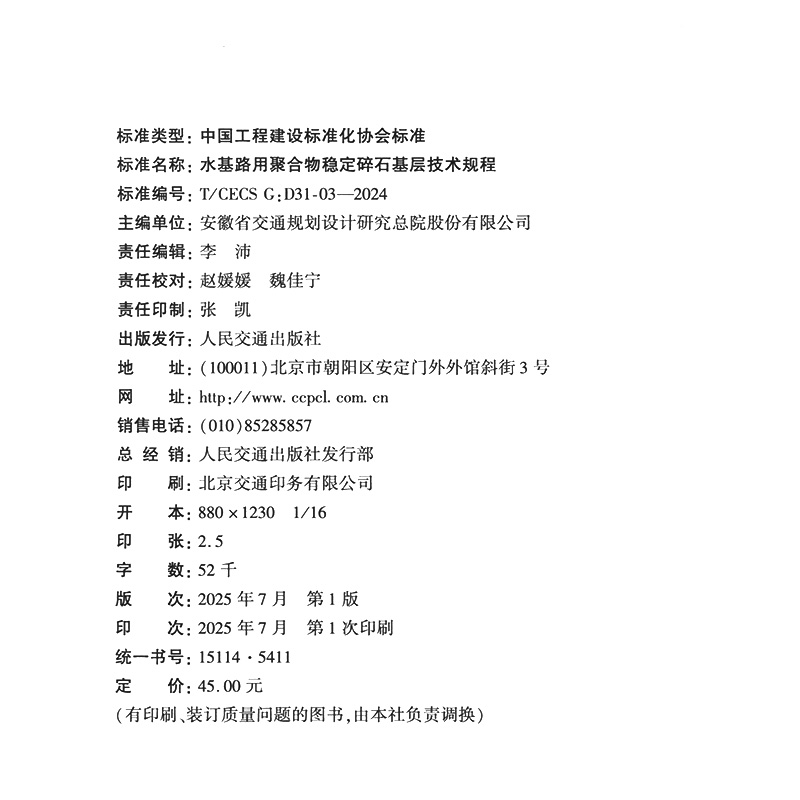 书名:水基路用聚合物稳定碎石基层技术规程(T/CECS G:D31-03—2024)
