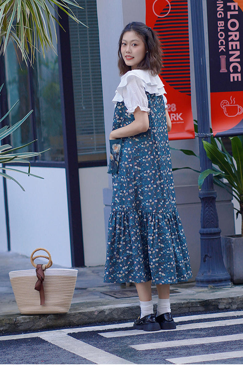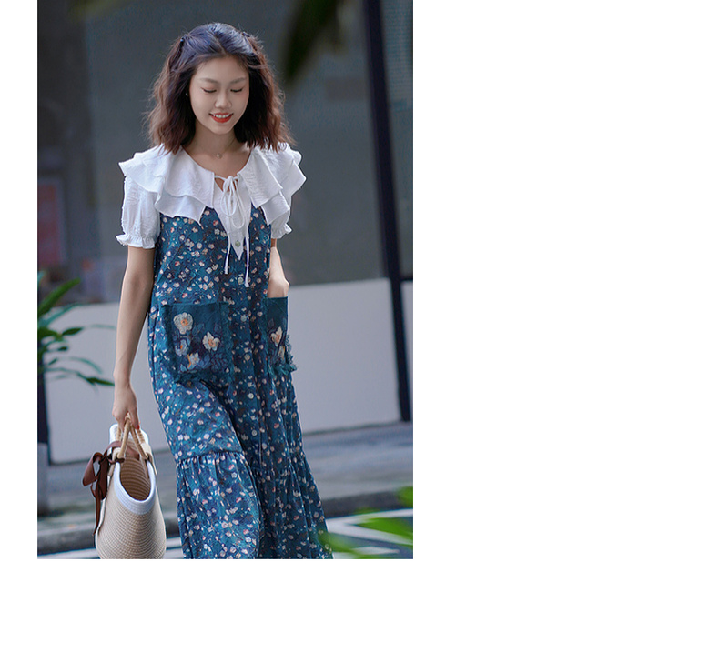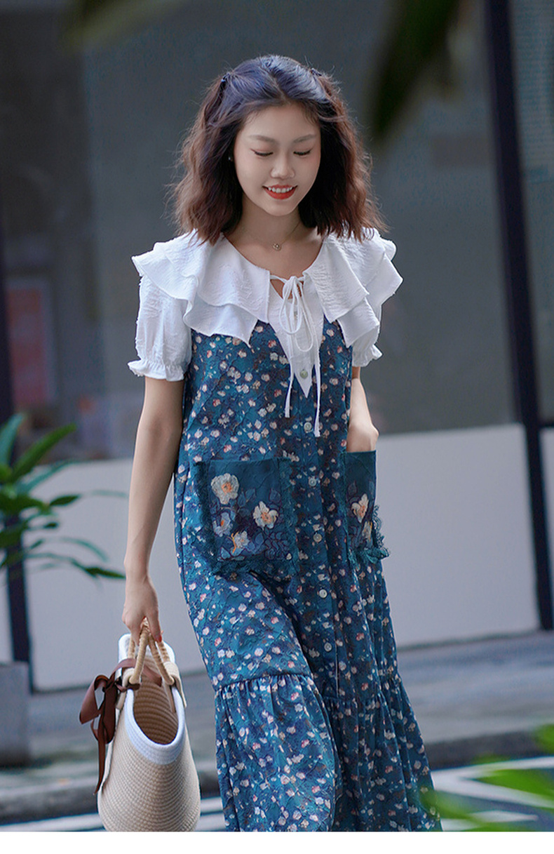 两三事漫山香絮莫奈花园风夏季新款森女风拼色印花假两件时尚