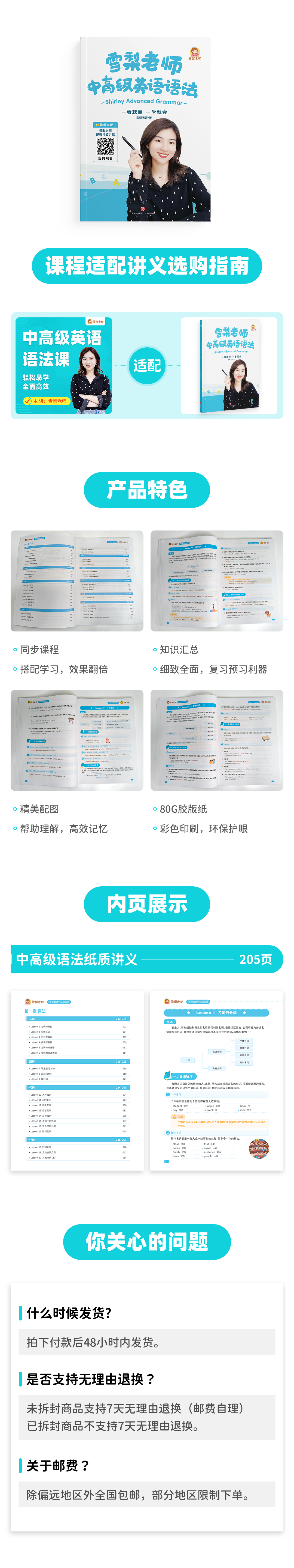 【新课】雪梨老师中高级英语语法课+配套书籍