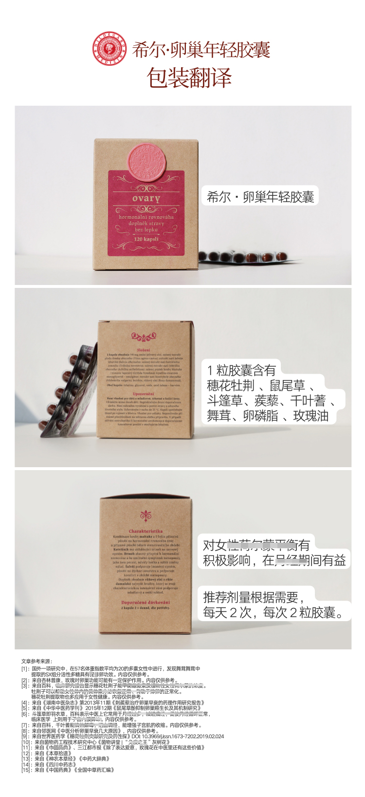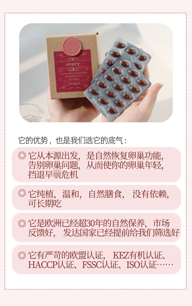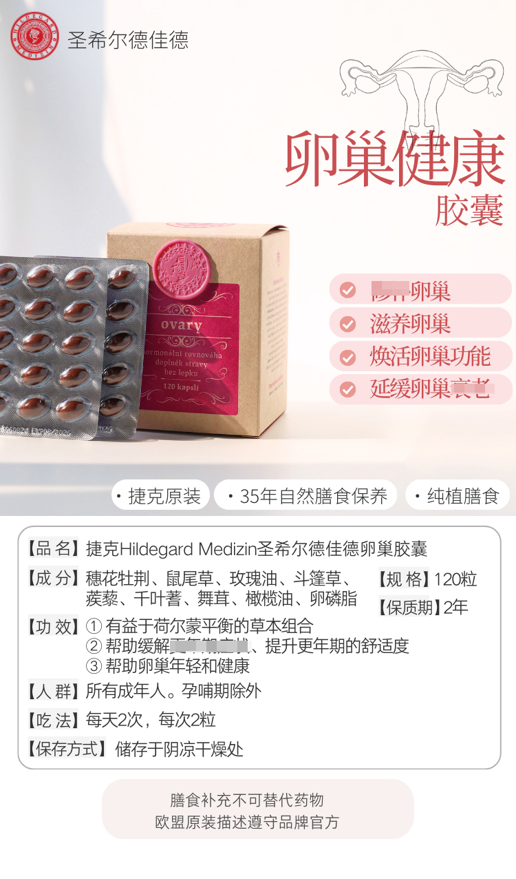 【防早衰早更 卵巢俢复 月径好 皮肤弹性紧至 女性备孕 调气色 纯植物膳食】卵巢胶囊 120粒 捷克 圣希尔德佳德