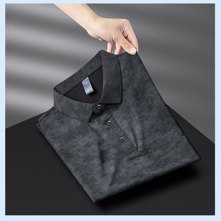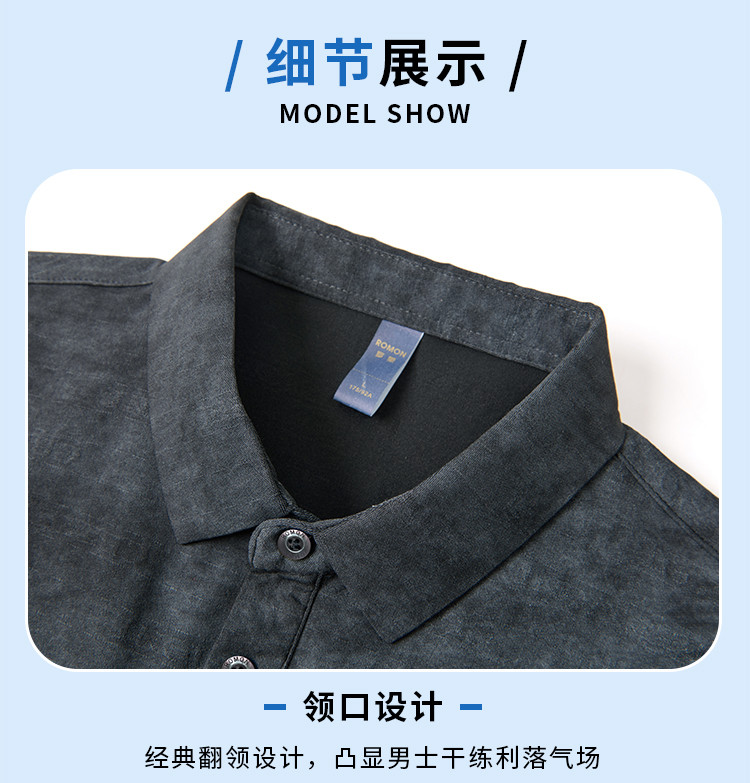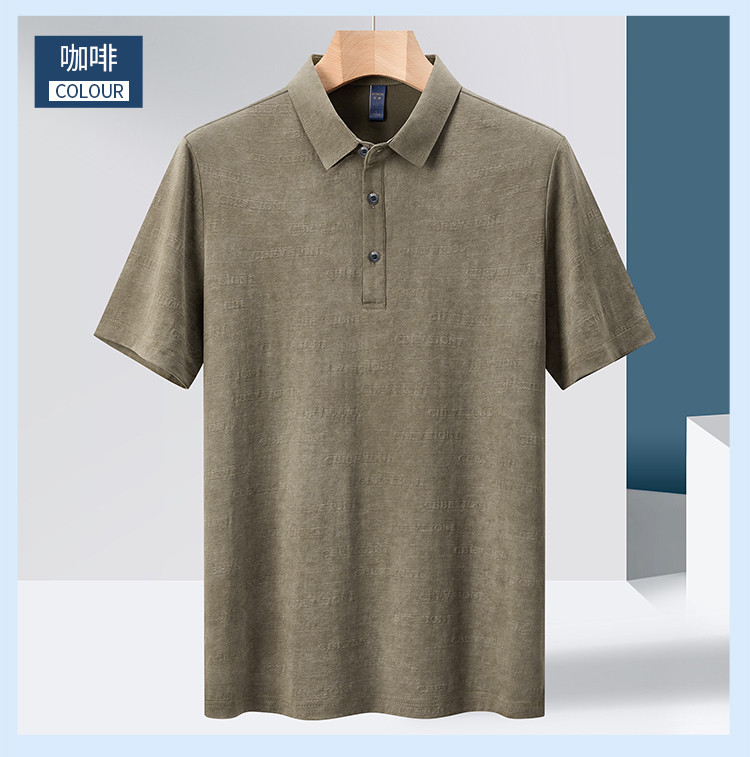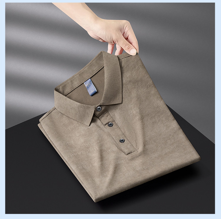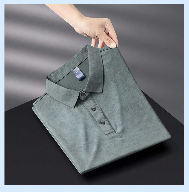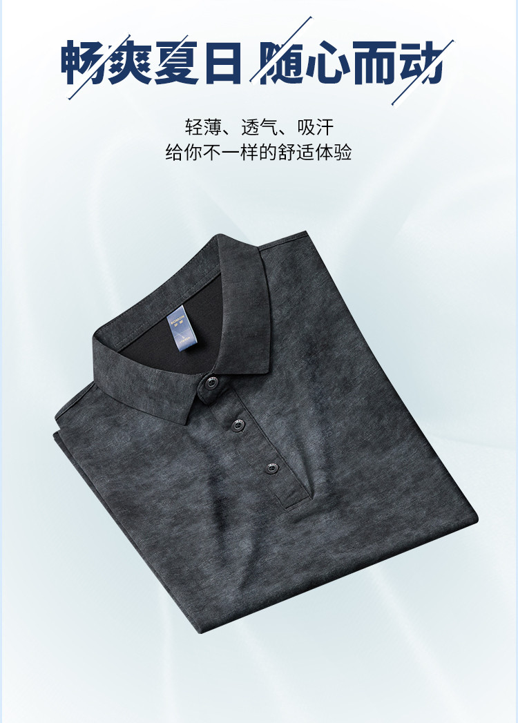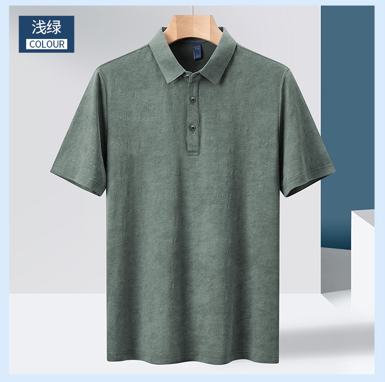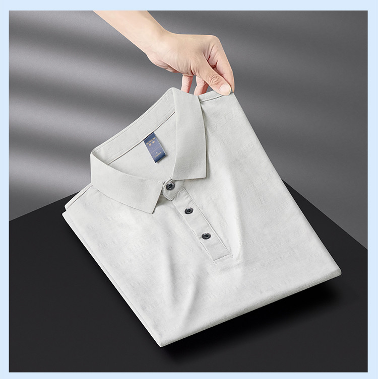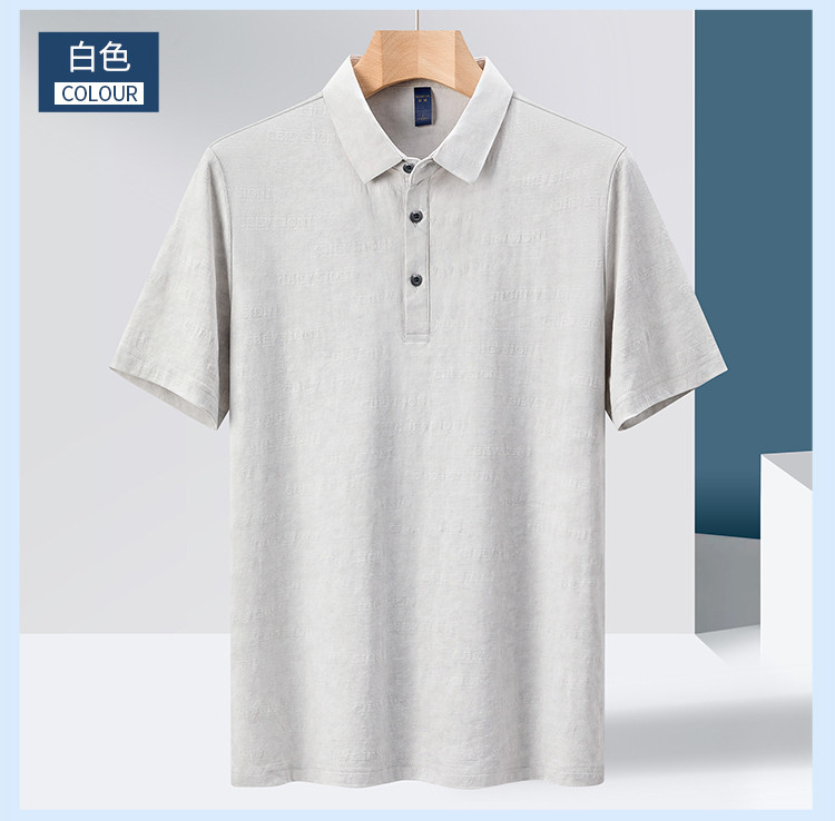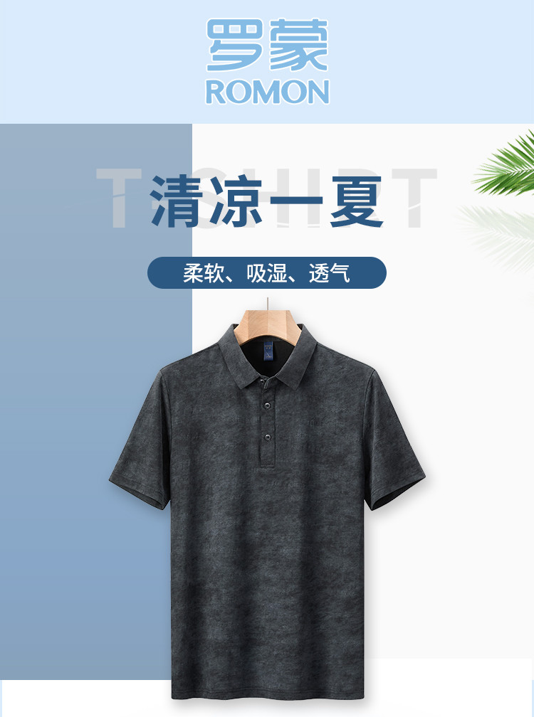 【雪花棉】罗蒙男士暗提花仿棉翻领t恤男士商务通勤透气polo衫短袖男