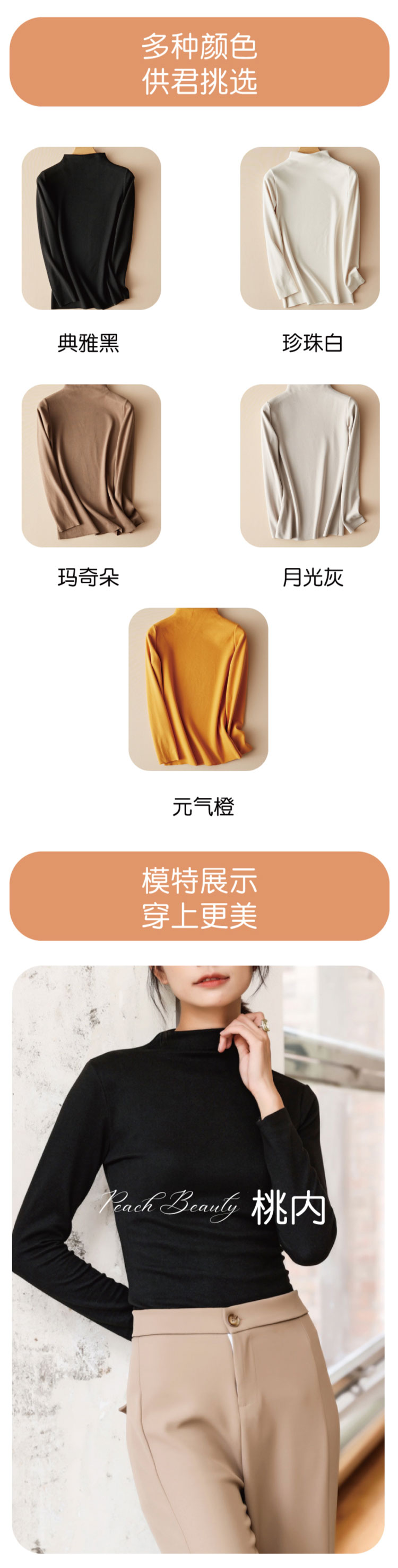 2023新款 打底衫 舒适亲肤 温暖舒适 有桃内就够!秋冬中高领羊绒蚕丝女士打底衫修身洋气内搭保暖内衣女长袖 pt-010