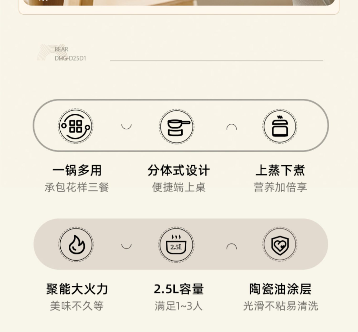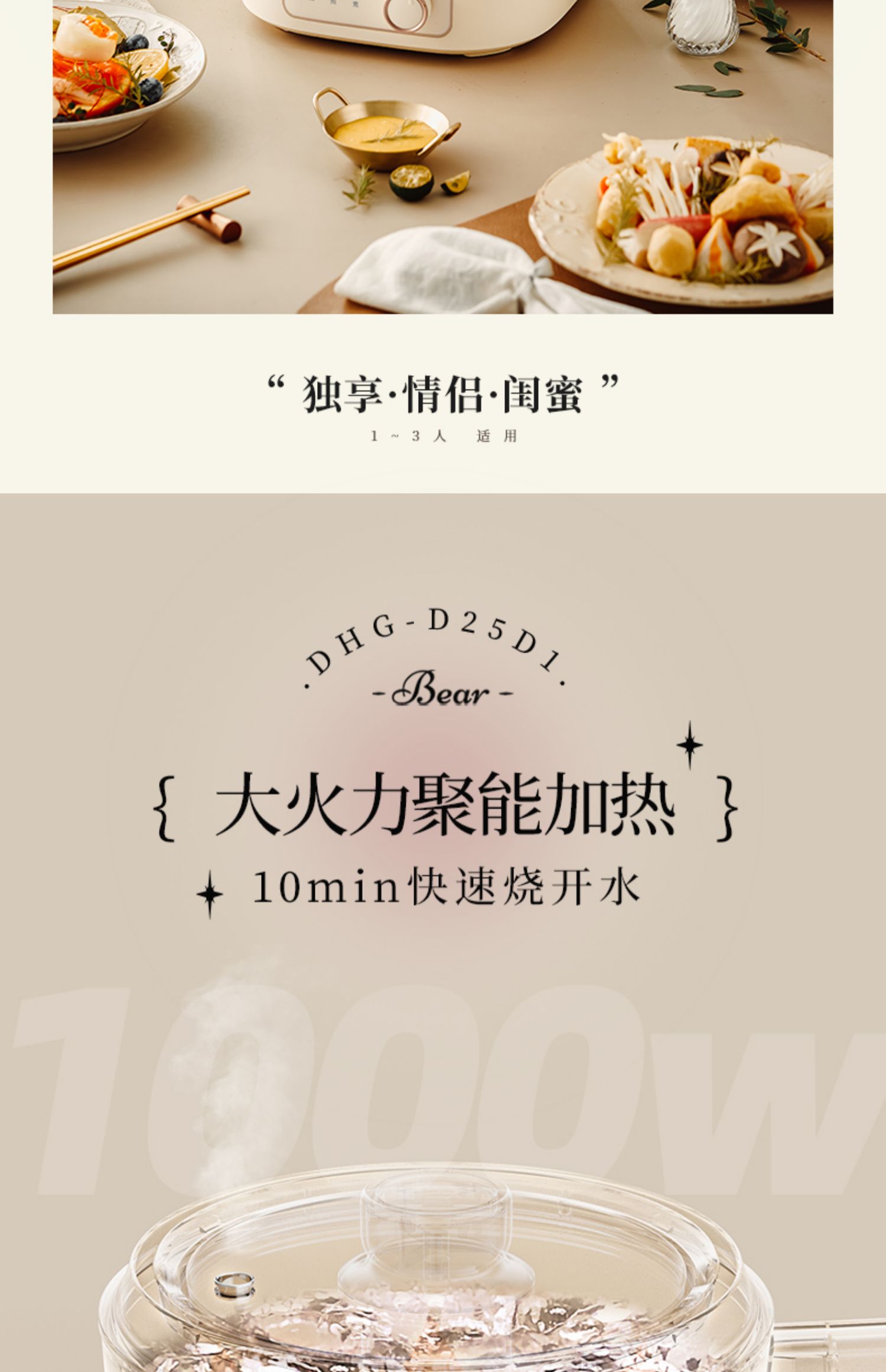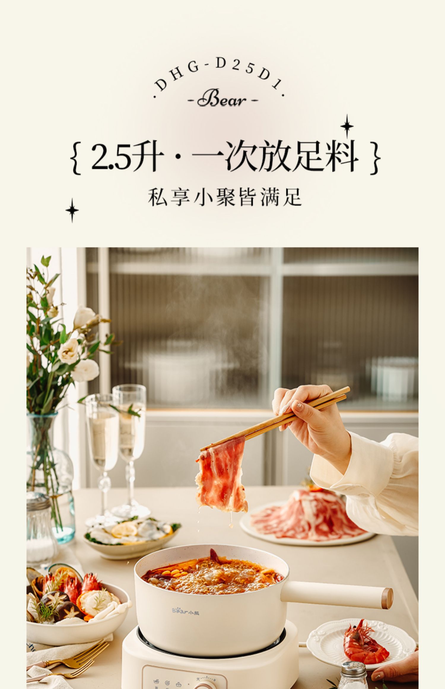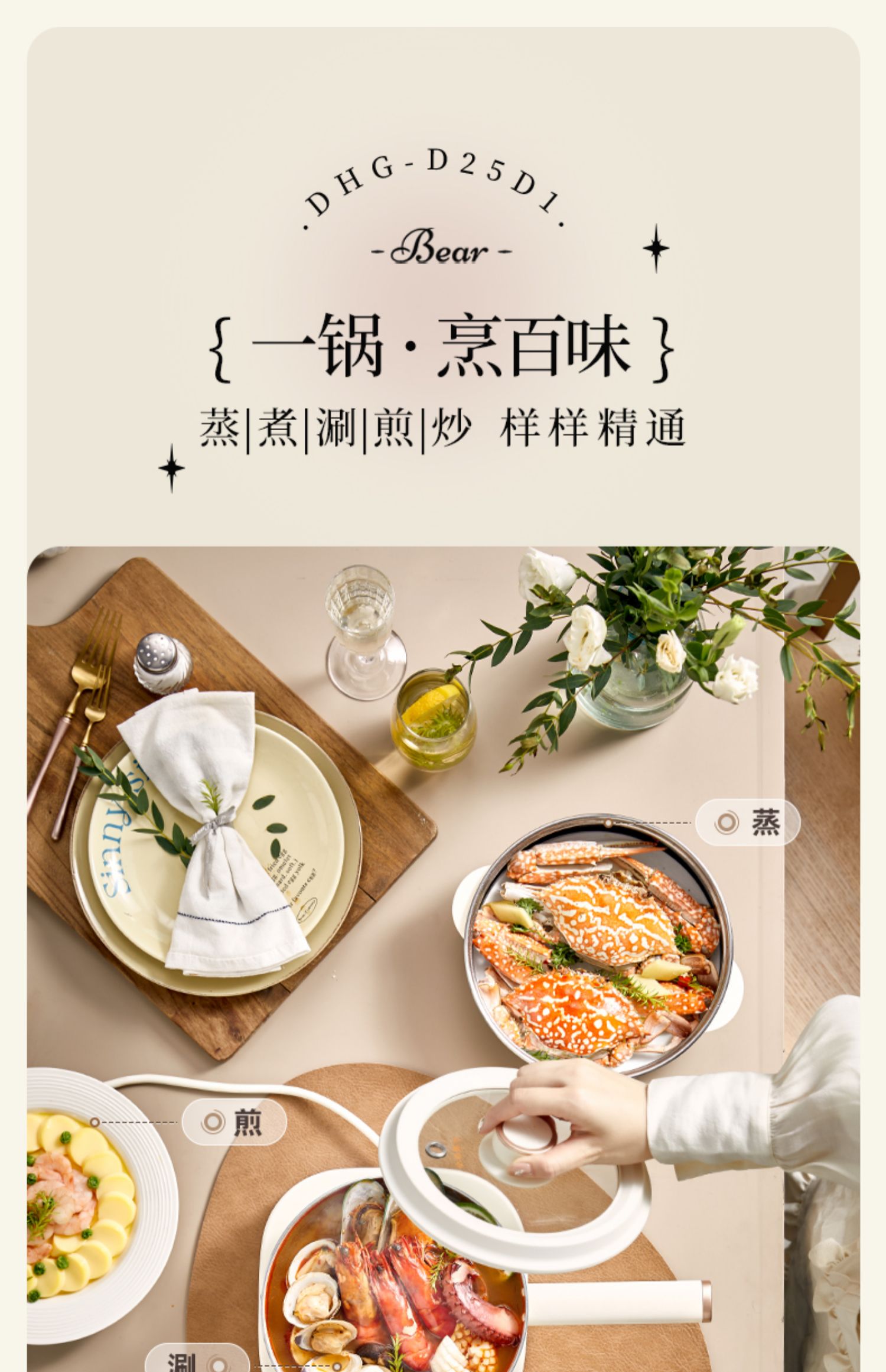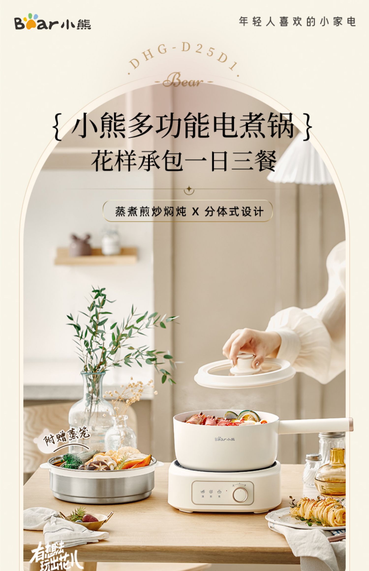 小熊(Bear)电煮锅家用分体式电火锅宿舍多功能蒸煮电炒锅泡面锅小型电锅