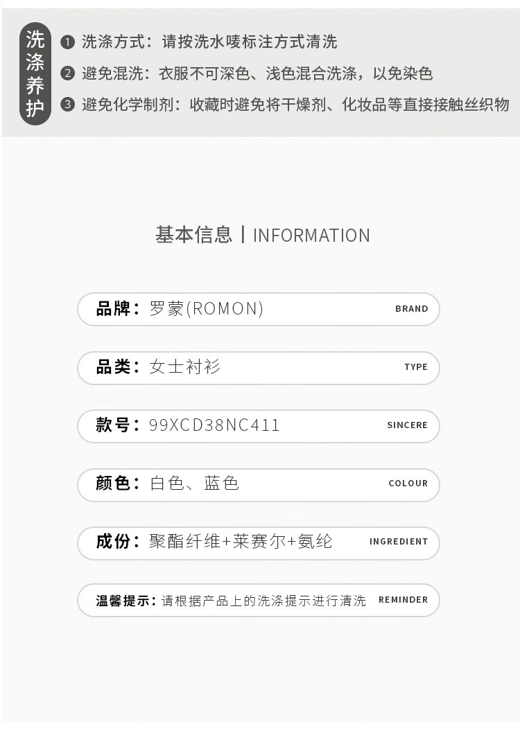 面料:76%聚酯纤维 22%莱赛尔 2%氨纶