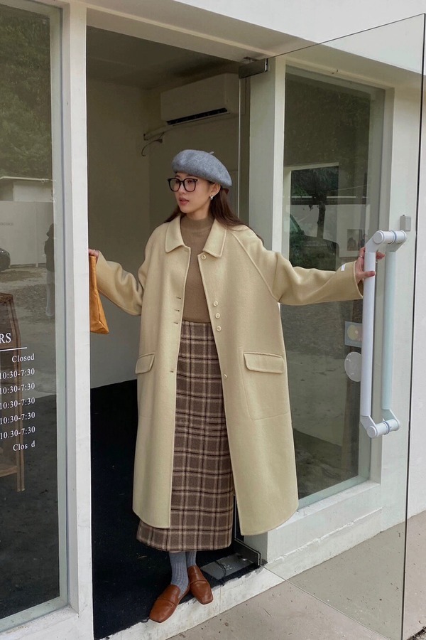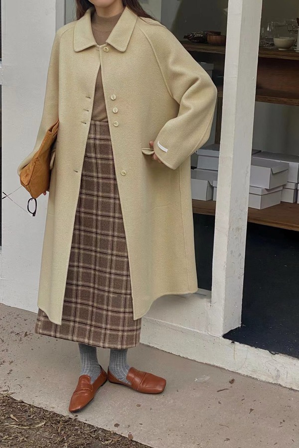 Le Malene 学院风咖色格纹半裙 19262