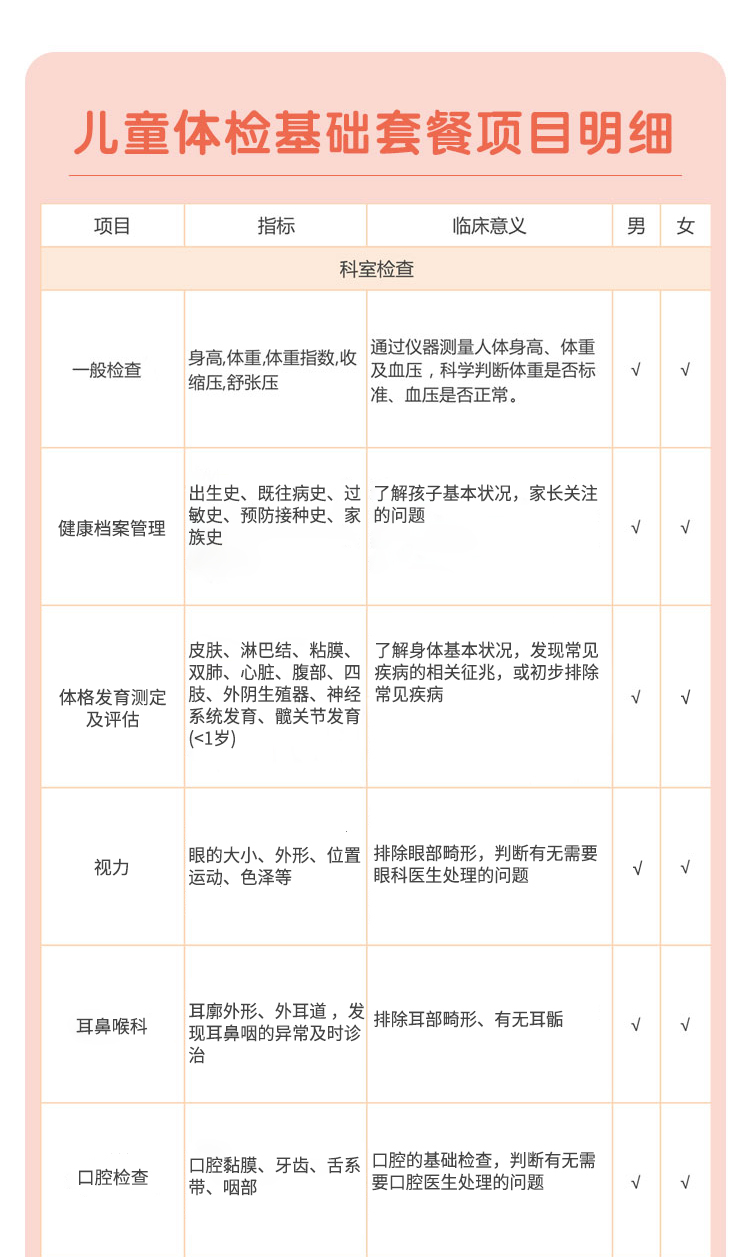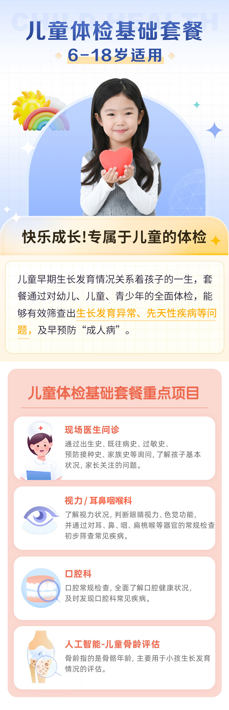 【北京爱康庇利积臣医疗中心】儿童体检基础套餐(6-18岁)