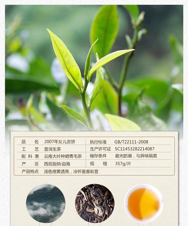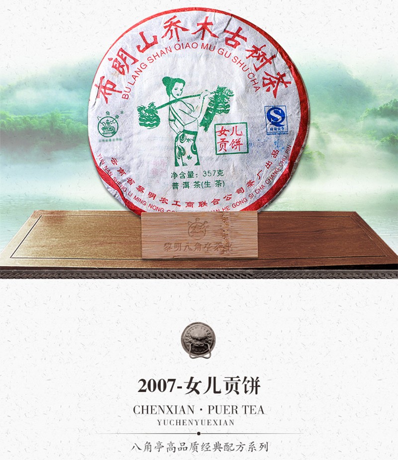 【顺丰包邮】黎明茶厂 2007年八角亭 女儿贡饼 布朗山乔木古树茶 普洱生茶 357克/饼(京东同款)