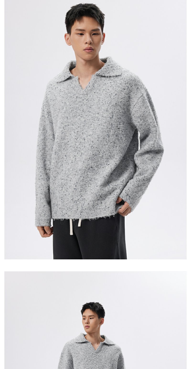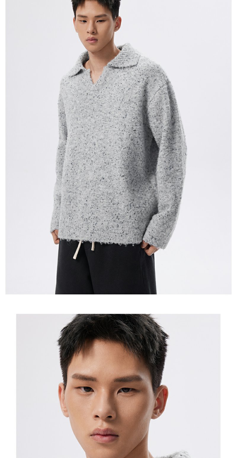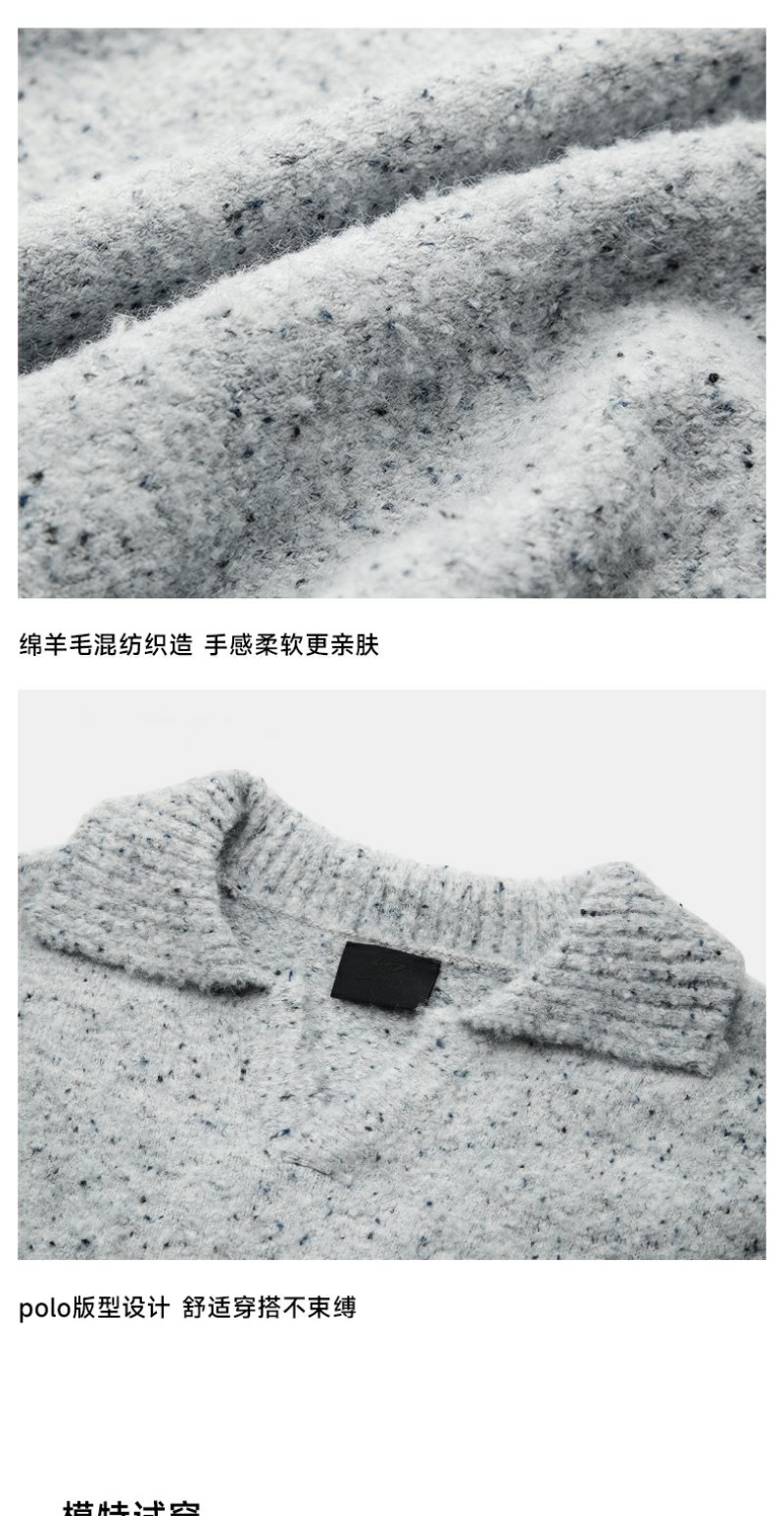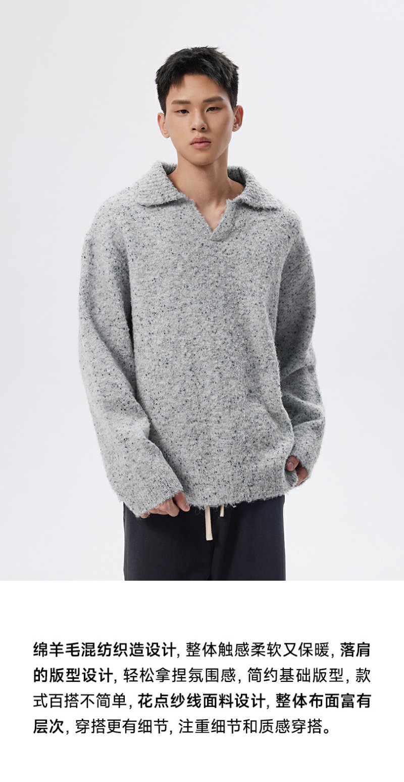 CHINISM折扣季 绵羊毛混纺polo领毛衣男冬季男士浅灰色针织衫帽衫
